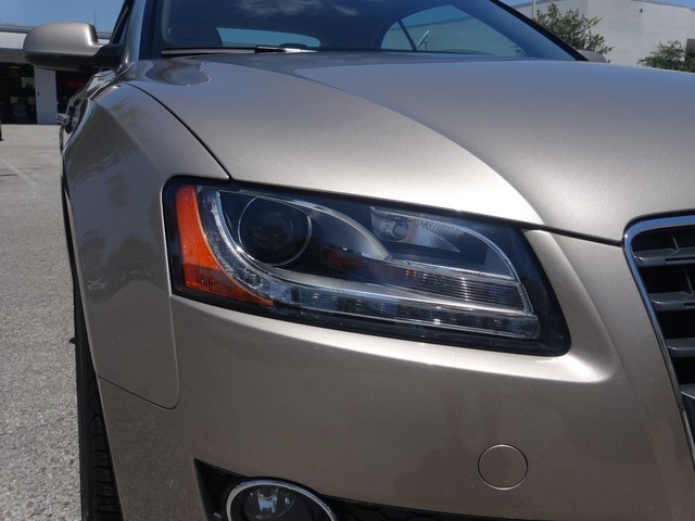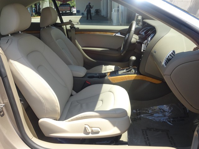 The options and features include: 3-Point Front Safety Belts, Anti-Theft Alarm & Blinking Theft-Deterrent Light, Driver & Front Passenger Dual Stage Airbags, Driver & Front Passenger Seat-Mounted Airbags, Front Automatic Pretensioners/Force Limiters, Front Passenger Knee Airbags, HomeLink Remote Transmitter, LATCH Child Safety Seat Anchors, Rear Outboard 3-Point Safety Belt Force Limiters, 3-Zone Automatic Climate Control System, Audi 180-Watt 10-Speaker Audio System w/Subwoofer, Audi Concert AM/FM/CD/MP3 Stereo System, Audi Music Interface w/iPod Integration, Central Locking w/Selective Unlock, Driver Information System, Electric Rear Window Defogger, Electronic Cruise Control, Front Windows w/Pinch Protection, Leather Seating Surfaces, Power Adjustable Front Seats, Power Central Locking System, Acoustic Multi-Layer Convertible Top, Front Fog Lights, Heated Windshield Washer Nozzles, Power & Heated Exterior Mirrors w/Signals, 4-Wheel Disc Anti-Lock Brakes, Brake Assist, Electronic Brake-Pressure Distribution, Electronic Stabilization Program, Hill Hold Assist, Servotronic Speed-Sensitive Power Steering, Tire Pressure Monitoring System