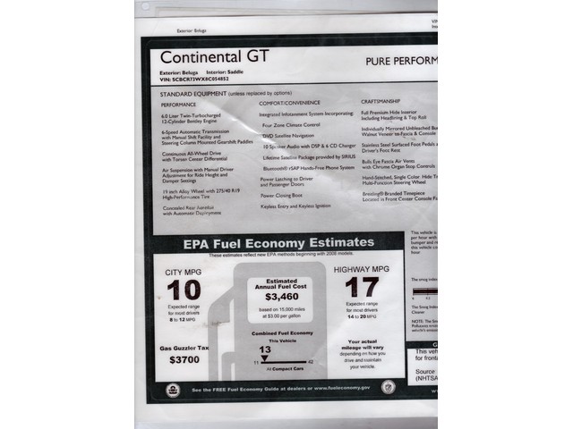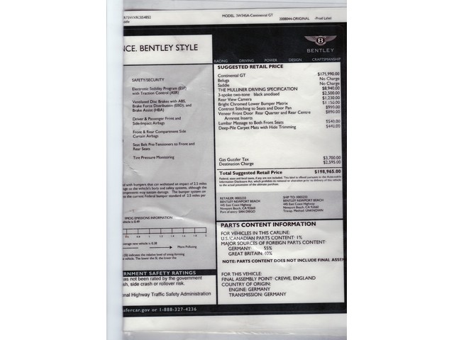 LUMBAR SUPPORT, THE MULLINER DRIVING SPECIFICATION, [$8940.00] REAR CAMERA, AND MORE.  SEE THE STICKER