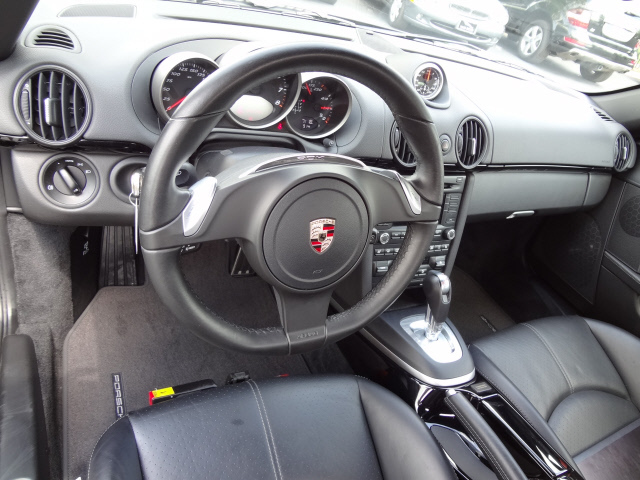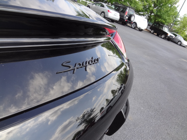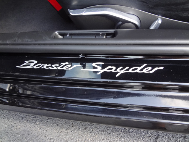 In additon to the long list of standard equipment this model comes with the following factory options:  Black exterior with black standard leather interior, Sport seats, 7 Speed PDK dual clutch automatic transmission, Heated seats, 19" Boxster Spyder wheels, Sound package plus, Fire extinguisher, Automatic climate control, Cup holder, Bluetooth interface, Sport chrono package, CDR-30 CD audio system, Floor mats, Universal audio interface, Self dimming mirrors and rain sensing wipers, and Sport exhaust system.