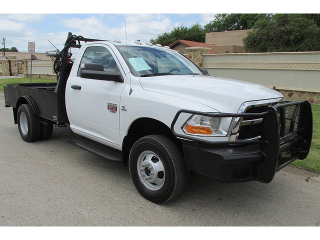 2011 DODGE 3500 REG CAB WITH A STEEL SKIRTED FLATBED. IT HAS A 50 GALLON AUXILIARY FUEL TANK BUILT INTO THE BED. IT CAN GO A LONG WAY & DO A LOT OF WORK. IT WON'T BE HERE LONG! WE ARE A FAMILY OWNED & OPERATED BUSINESS & WE PROMISE YOU WILL ENJOY YOUR CAR BUYING EXPERIENCE.