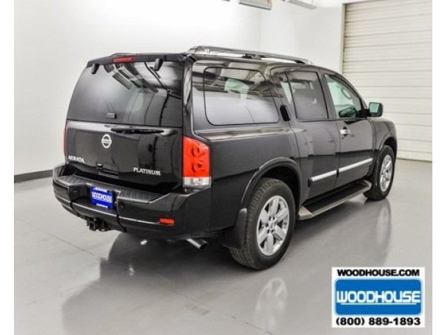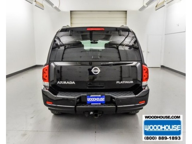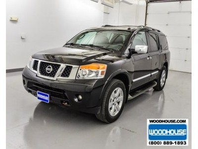 Fully loaded and clean: 2012 Nissan Armada Platinum 4x4.  Equipment includes roof rack, cruise, tilt, rear climate, front row dual climate, keyless entry, 3rd row seat, dual power seats, heated leather seats, running boards, 2nd row captain's chairs with console, chrome wheels, tow hitch & fog lights.  This full size SUV still has Nissan factory warranty and is eligible for extented coverage.  Call Woodhouse Nissan today and ask for Ryan Pemberton.  Ryan is s Nissan certified sales consultant - he can answer all your questions.  Woodhouse offers finance and delivery options for your convenience - we also accept trades!