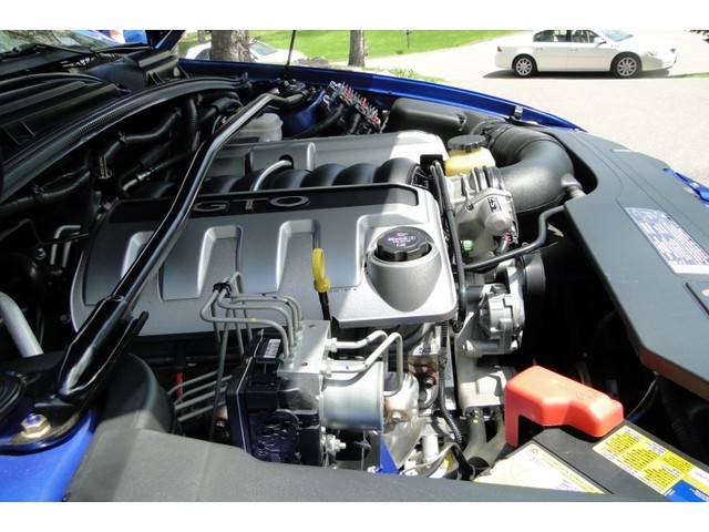 This low mileage Impulse Blue Metallic GTO is immaculate.  Under the hood is a 400 HP 6.0L LS2 V-8 RWD.  It has 4-Speed auto transmission, Performance Brake Package with Front/Rear Disc Brakes, Rack & Pinion steering, Limited Slip Rear Differential and 17” X 8” 5 Spoke Alloy Wheels and Dual Exhaust with Chrome Tips.