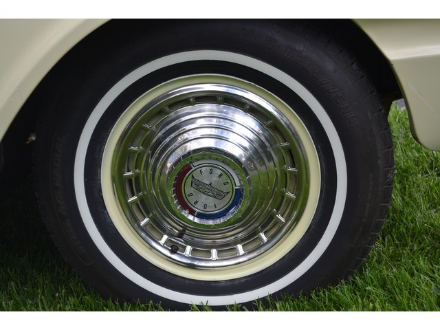This vehicle has had some work completed during its previous ownership. It has had a repaint at some point in the original color. Even though it was a single-stage repaint, it still looks good and shines nicely. There is no evidence of previous accident damage. The body, floors, trunk, jams, doors, hood and trunk lid are all solid.  There is some minor surface rust showing in places with some bubbles in the rear quarters and lower fenders. All trim and moldings are in nice condition with a beautiful early 60’s grill. The original rims have been sandblasted and repainted in the body color, and new tires were fitted along with date correct Ford Galaxie wheel covers. In our opinion these look much nicer than the smaller Fairlane covers of the same year.