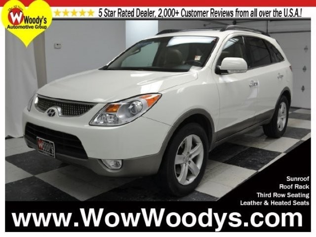 FWD 3.8L V6 Sunroof, Leather & Heated Seats, CD Changer w/Aux, Third Row Seating, Infinity Sound System, Alloy Wheels, Back-up Sensors, Power Adjustable Driver's Seat w/Memory Position Settings, Roof Rack, Rear Spoiler, Dual Zone Climate Control, Power Liftgate, USB Port, Certified Warranty. Looking for a great deal on a fantastic-looking and fun 2011 Hyundai Veracruz? Well, we've got it. You've always been wanting that special ride to put a smile on your face. Well, today is that day!.Price includes $500 instant rebate when financed through a Woody's Lender.Want a custom video? Just text your first & last name and the stock# to 660-247-5319.This vehicle's stock# is 11D417-48 |Check out www.woodyswow.com to see why we're different! Woody's is an Honest, Up-Front, One Price Dealership selling new & used cars in the greater Kansas City area. Check out what over 2000 customers are saying at over2000reviews.com When it comes to Price, we're third party verified among the lowest In The Nation! This vehicle is certified with a **Pre-Owned Warranty** at no cost to you!Not sure which vehicle you want? With the largest 10AcreMegaLot and most diverse inventory in Middle America you can view all makes in one location! Check out our website to see 800+ vehicles, 50+ Pictures, Videos, Free History Reports and more! www.wowwoodys.com You can search by payment, get a trade appraisal, and setup financing all at www.megawoodys.com now or just call us toll free at (888) 881-0393 to schedule a test drive.The majority of our vehicles qualify for Woody's Assurance Program which includes a 12 Month Return Policy, Limitations Apply, See Dealer for Details.Some of our customers say, Help me find a car or just find me a car We can find you any used car, used truck, used suv. Plus, We will pick you up at the airport or ship your vehicle to you! Our award winning Finance Management Team works with over 15 local and national banks to get you the best rate and term. If you would like to save time just visit our www.wowwoodys.com website to access our Trade Appraisal Tool and Online Secure Credit Application. We also offer an online payment calculator so you can setup different down payment/monthly payment options.[Image]