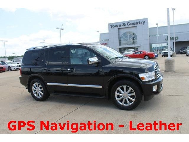 This family-hauling 2008 Infiniti QX56 is nicely equipped with features such as Sojourner Leather-Appointed Seating Surfaces, GPS Navigation System, 5.6L V8 DOHC, 12 Speakers Burr-Brown AM/FM radio Audio System w/XM Satellite, CD player, Steering wheel mounted audio controls, 2.937 Axle Ratio, 20" x 8J Chromed Aluminum-Alloy Wheels, 3rd row seats: split-bench, 4-Wheel Disc Brakes, ABS brakes, Adjustable pedals, Air Conditioning, Anti-whiplash front head restraints, Auto tilt-away steering wheel, Auto-dimming door mirrors, Auto-dimming Rear-View mirror, Auto-leveling suspension, Automatic temperature control, Bodyside moldings, Brake assist, Bumpers: body-color, Delay-off headlights, Driver door bin, Driver vanity mirror, Dual front impact airbags, Dual front side impact airbags, Electronic Stability Control, Four wheel independent suspension, Front anti-roll bar, Front Bucket Seats, Front Center Armrest, Front dual zone A/C, Front fog lights, Front reading lights, Fully automatic headlights, Garage door transmitter: HomeLink(R), Genuine wood console insert, Genuine wood dashboard insert, Genuine wood door panel insert, Heated door mirrors, Heated Front Bucket Seats, Heated front seats, Heated rear seats, Heated steering wheel, High-Intensity Discharge Headlights, Illuminated entry, Leather Shift Knob, Leather steering wheel, Low tire pressure warning, Memory seat, MP3 decoder, Occupant sensing airbag, Outside temperature display, Overhead airbag, Overhead console, Panic alarm, Passenger door bin, Passenger seat mounted armrest, Passenger vanity mirror, Pedal memory, Power door mirrors, Power driver seat, Power passenger seat, Power steering, Power windows, Radio data system, Rear air conditioning, Rear anti-roll bar, Rear audio controls, Rear reading lights, Rear seat center armrest, Rear window defroster, Rear window wiper, Reclining 3rd row seat, Remote keyless entry, Reverse sensing system, Roof rack, Security system, Speed control, Speed-sensing steering, Speed-Sensitive Wipers, Split folding rear seat, Steering wheel memory, Tachometer, Tilt steering wheel, Traction control, Trip computer, Turn signal indicator mirrors, Variably intermittent wipers, and Voltmeter. J.D. Power and Associates gave the 2008 QX56 4 out of 5 Power Circles for Overall Performance and Design. Visit us on line at www.hebertstandc.com 24/7 for great internet deals!