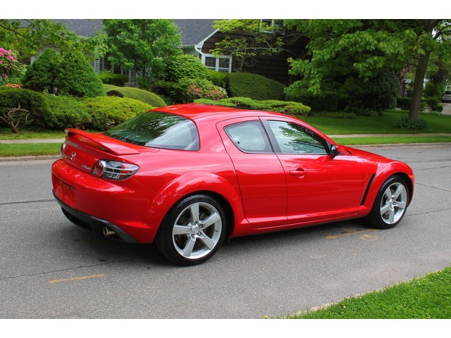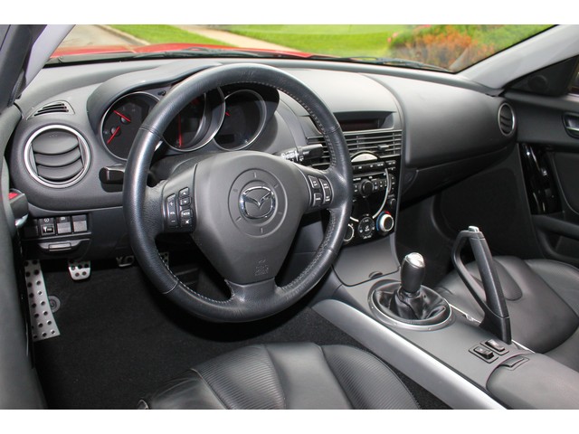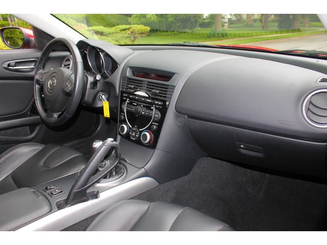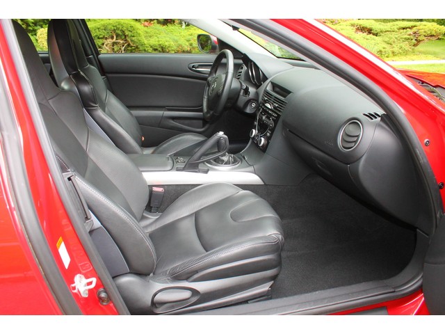 So what could be better to start the Spring and Summer season? This is a one owner never abused spotless vehicle. The mileage is reflective of its condition. This is the only condition you want to purchase this vehicle in. The exterior red paint still shines new and the interior shows no signs of wear. The wheels have no curb rash with lots of life left in the tires. There can be no substitute for a clean low mileage rotary power driven engine that hasn't even been broken in yet at 20k miles. Its the right color, the right price at the right time of year. No second guessing your self on this one. If ever there was a great representation of this model this is it! This RX-8 is equipped with 18-inch wheels, cruise control, a leather-wrapped steering wheel and a six-speaker CD stereo with an auxiliary audio jack, heated seats, automatic climate control, keyless ignition/entry, a Bose stereo and much more.
