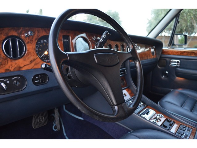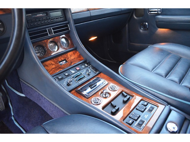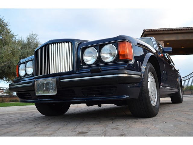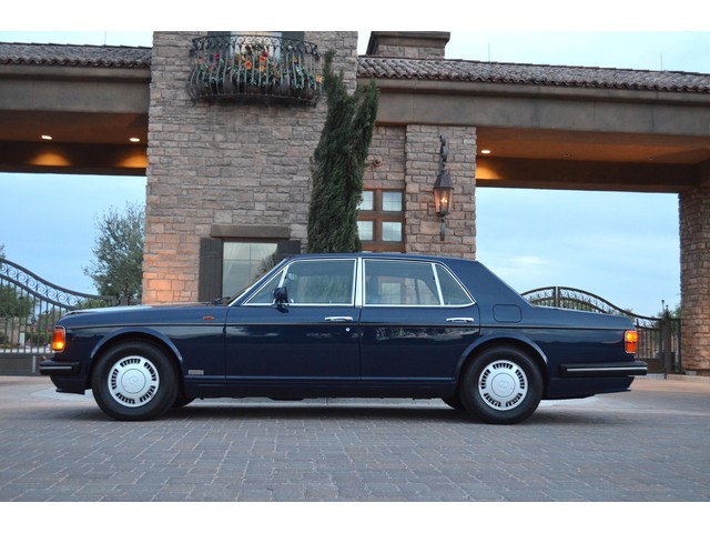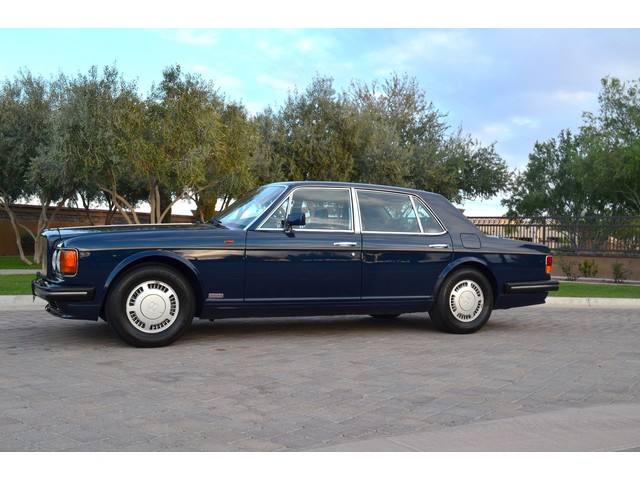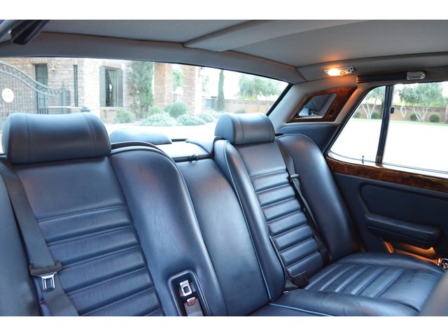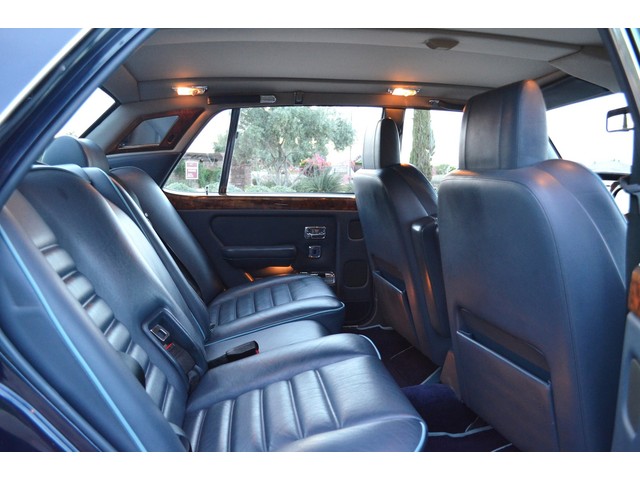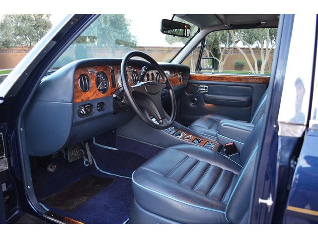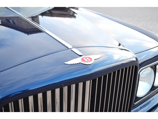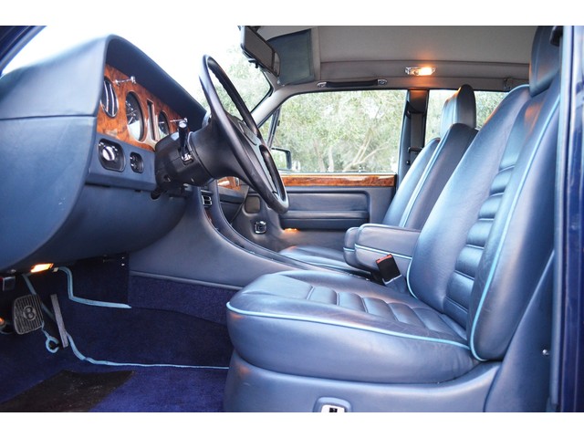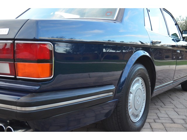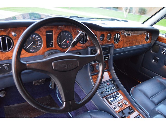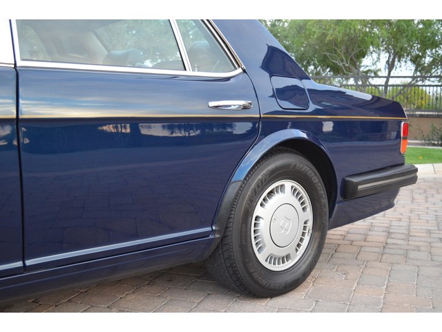 European Motor Studio is proud to offer this gorgeous 1990 Bentley Turbo R Saloon finished in Royal Blue Metallic over Blue Connolly hides with Surd Blue contrasting piping. This Turbo R left the Bentley Crewe production line in October of 1989 and was invoiced to North America. The car sold new in Ontario Canada to its first owner in December of 1989 in the amount of $195,000. The Turbo R has only three owners from brand new and has covered only 45,110 actual Box A miles (72,527KM). The Royal Blue Metallic paint is absolutely stunning and shows absolutely no dents, dings or scratches anywhere on the car and only a few tiny stone chips on the front nose and lower skirt valance. All of the exterior chrome and trim look beautiful and show almost no wear or age of any kind. All of the glass and lenses look excellent and free from any pitting or damage. The stunning blue Connolly leather interior shows almost no wear of any kind with just a slight creasing on the drivers bolster. All of the Surf Blue piping and Wilton Wool carpets are in outstanding condition free from any wear, stains or damage. All of the leather on the console, doors, upper and lower dash look near showroom and free from any damage or issues. All of the interior chrome, all of the trim and all of the switchgear are in outstanding condition and free from any damage or wear. This Turbo R starts right up and idles beautifully. The car goes into gear with ease and shifts effortlessly through all of the gears. The 6.75 litre turbocharged engine pulls effortlessly and gives an endless amount of smooth power. The suspension feels very tight and precise and is free from any thumping or noises. The brakes feel very solid and do not give any signs of fade or grinding and the steering is very precise and tight without any vibrations or wondering. The rear hydraulic suspension adjusts the vehicle like it is designed to and upon cold start levels the car. All of the electronics in the car are in excellent working order, all of the windows, locks, mirrors, seats, seat heaters, windshield wipers, interior and exterior lights, power antenna and radio are all working as designed. The AC blows very cold and the heater works on all of the fan speeds. All of the gauges are working and appear to be reading correctly. This Turbo R has just had a recent tune up and service along with BRAND NEW AVON tires (Bentley recommended tires cost about $600-700 a tire). There are no signs of any damage, rust or corrosion to this Bentley or any signs of paint work having ever been done. This Turbo R comes with its original set of Bentley keys, owners manuals, dealer books, service books, warranty books and original leather case. The car also has its original jack, jack tools, tool kit, and spare. The car has a clean and clear carfax and clean and clear title with Box A actual miles. This is an outstanding low mileage beautifully maintained 1990 Bentley Turbo R Saloon that runs and drives superbly.