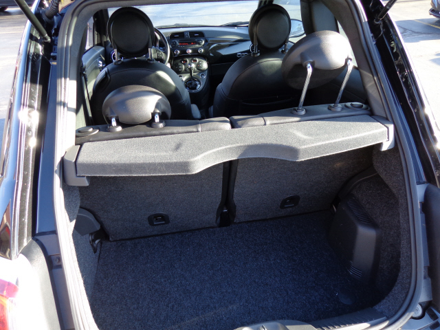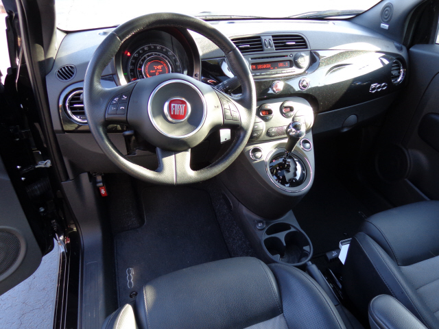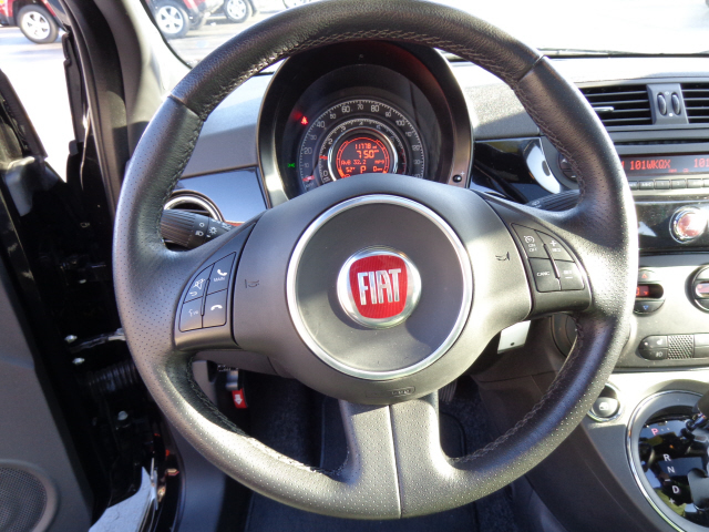 Heated Front Seats and Power Sunroof. Back in Black! Drive this home today! Imagine yourself behind the wheel of this good-looking and fun 2012 Fiat 500. This car is nicely equipped with features such as Heated Front Seats, Power Sunroof, 4-Wheel Disc Brakes, 7 Speakers, ABS brakes, Air Conditioning, Alloy wheels, AM/FM Radio, AM/FM radio, Anti-whiplash front head restraints, Brake assist, Bumpers: body-color, CD player, Delay-off headlights, Driver door bin, Driver vanity mirror, Dual front impact airbags, Dual front side impact airbags, Electronic Stability Control, FACTORY POWERTRAIN WARRANTY!, Front anti-roll bar, Front Bucket Seats, Front fog lights, Front reading lights, Front wheel independent suspension, FULLY SERVICED AND READY TO GO!, GREAT VEHICLE HISTORY!, Heated door mirrors, Illuminated entry, Knee airbag, Leather steering wheel, Leather Trimmed Bucket Seats, LOCAL TRADE!, LOW MILES!, Low tire pressure warning, MP3 decoder, Occupant sensing airbag, Outside temperature display, Overhead airbag, Passenger door bin, Passenger vanity mirror, Power door mirrors, Power steering, Power windows, Radio data system, Rear window defroster, Rear window wiper, Remote keyless entry, Speed control, Split folding rear seat, Spoiler, Sport Cloth Bucket Seats, Sport steering wheel, Steering wheel mounted audio controls, Tachometer, Tilt steering wheel, Traction control, and Trip computer. Neat little gas-saving vehicle here, folks! No trip is too far, nor will it be too boring!