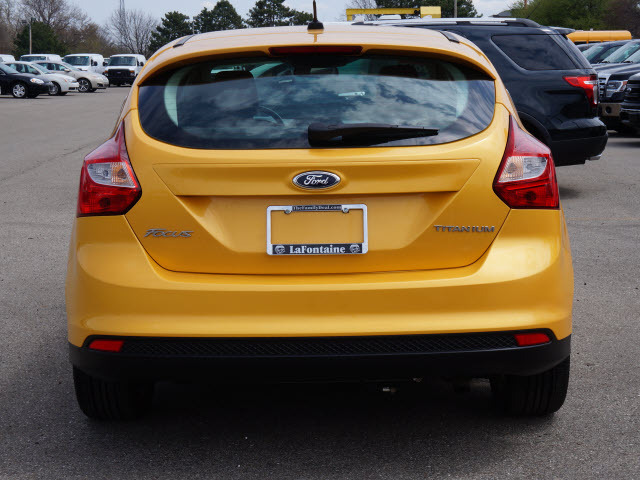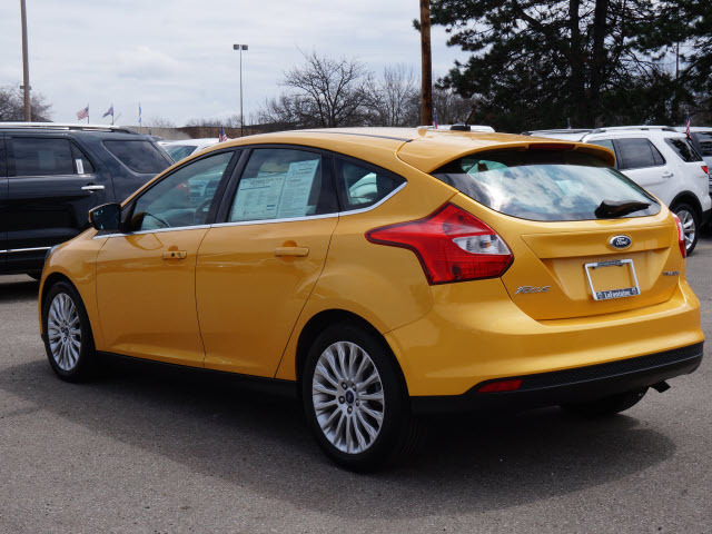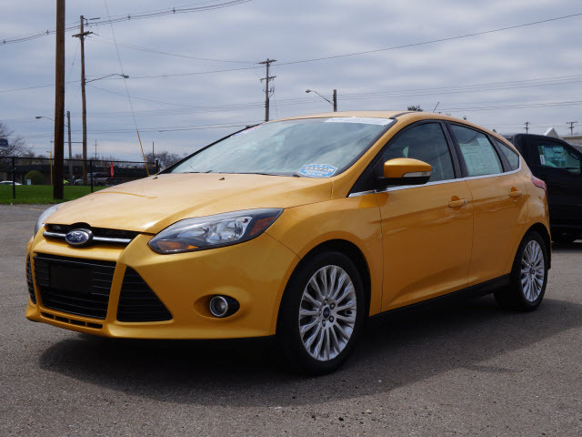 Titanium Premium Package (Auto-Dimming Electrochromic Rearview Mirror, Rain-Sensing Wipers, and Reverse Sensing System), Focus Titanium, Ford Certified, 4D Hatchback, 2.0L I4 DGI Ti-VCT PZEV, FWD, Yellow Blaze Metallic Tri-coat, Charcoal Black w/Leather-Trimmed Sport Front Bucket Seats, Alloy wheels, Automatic temperature control, Brake assist, Electronic Stability Control, Four wheel independent suspension, GPS Navigation, Heated Leather Seating, Leather Shift Knob, Leather steering wheel, MY FORD TOUCH, One Owner, Outside temperature display, Park Assist (back-up Beepers), Power Moonroof, Rear View Back Up Camera, Smart-key with push-button start, Sony Premium sound system with AM/FM/XM-Sirius/CD/Auxillary plug and Sony premium speakers, Steering wheel mounted audio controls, SYNC by Microsoft, Tachometer, Telescoping steering wheel, Tilt steering wheel, Traction control, Trip computer, and Voice-Activated Navigation. This 2012 Focus is for Ford fans looking the world over for that perfect car. Named an Automobile Magazine All-Star for 2012. Ford Certified Pre-Owned means you not only get the reassurance of a 12Mo/12,000Mile Comprehensive Warranty, but also up to a 7-Year/100,000-Mile Powertrain Limited Warranty, a 172-point inspection/reconditioning, 24/7 roadside assistance, trip-interruption services, rental car benefits, and a complete CARFAX vehicle history report. This exterior of this attractive Focus Titanium is finished in a very stylish Yellow Blaze Metallic Tri-coat.