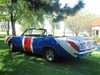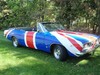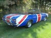 New top with correct curved glass rear window.  New carpet.  New windshield.  New backup bezels.  New bumpers.  Excellent original grills.  98% original interior upholstery – 2 seam repairs on the bottom of the driver’s seat.  Original PP1 red paint in engine compartment, door jams, and trunk.  Now wrapped in graphic tribute to its British history.