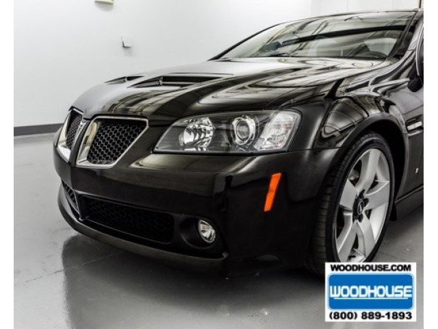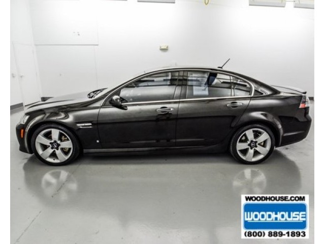 Hard to find 2009 Pontiac G8 sedan with a 6.0L V8.  This 4 door Panther Black Metallic car is sharp and fast!  Equipped with alloy wheels, heated leather, dual power seats, keyless entry, dual climate, automatic headlights and remote start.  Premium audio includes CD changer, MP3, equalizer, auxiliary, satellite and Bluetooth.  Very few made and even less for sale right now - call Matt Hartman at Woodhouse Ford today to discuss this opportunity - 402-426-4126.  Woodhouse offers finance and delivery options for your convenience - we also accept trades!