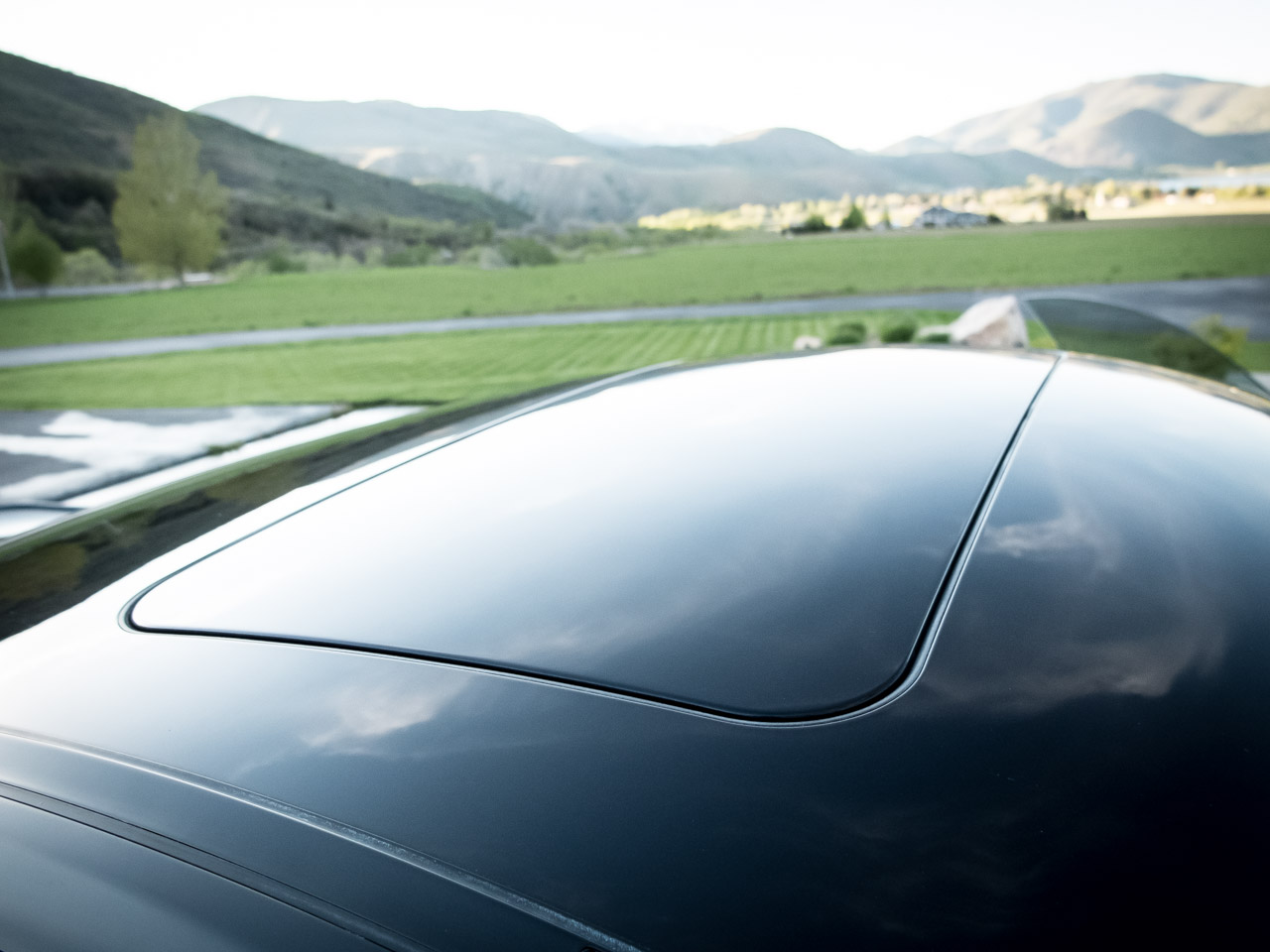 The paint is smooth and polished with only minor wear typical of a carefully driven 30,000 mile car, so for 50,000 miles, it looks reallygood. Glossy black, smooth, and water beads up nicely when being washed. Please call us with any question about this description 801-839-4224.
