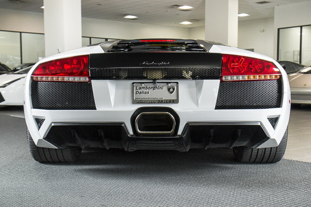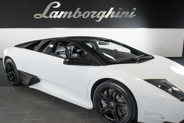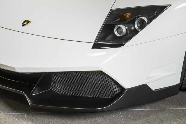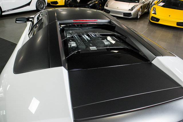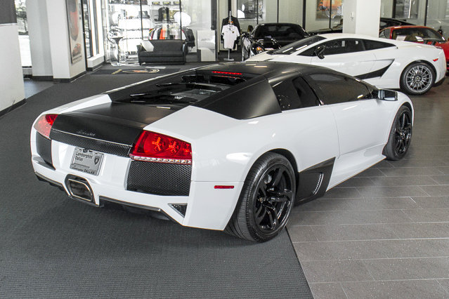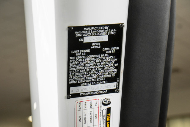 This is a smoke free Carfax certified 2008 Lamborghini Murcielago LP640 coupe equipped with a 6.5L 640HP V12 engine and a 6-speed E-Gear (auto & paddle shift) transmission. This car is finished in a beautiful Bianco Isis (Gloss White) exterior color and Nero Perseus (Black) full leather interior along with Q-Citura pattern stitch and White contrast stitching throughout.