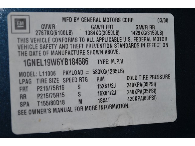 • VIN: 1GNEL19W6YB184586