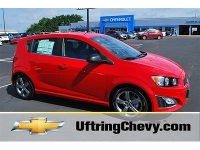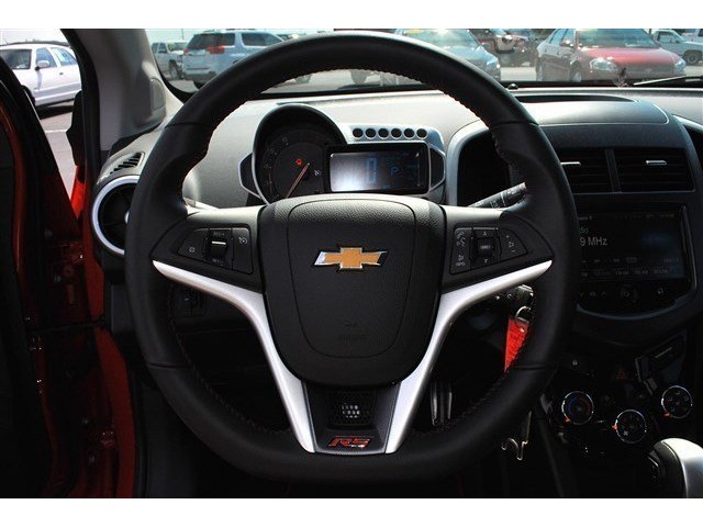 LEATHER, BLUETOOTH, MP3 Player, KEYLESS ENTRY, 33 MPG, SAT RADIO, TURBOCHARGED, Built in the USA, the 2013 Chevrolet Sonic is the second-smallest car to wear the bow-tie badge but its abilities are far from diminutive. The Sonic delivers fuel economy that's equal to or better than its rivals and driving dynamics that range from comfortable and nimble to downright sporty. The Sonic is no ordinary small car. It offers loads of features unexpected at this price range, such as streaming Bluetooth audio and the MyLink infotainment system that allows for control of cell phone-enabled apps. Around town and on the highway, the 2013 Chevy Sonic sets a new standard for subcompact driving refinement, as it drives like a bigger, pricier car than any of its competitors. One of the front-wheel-drive Sonic's best tricks is how it manages to deliver both segment-leading highway manners with impressive road-holding abilities. Inside the 2013 Chevy Sonic is a mix of conservative design with a touch of motorcycle inspiration in the form of a compact gauge cluster with a digital speedometer. The big news for the 2013 Chevy Sonic is the addition of the sporty RS that includes a stiffer suspension, leather seats and unique 17-inch wheels. The 2013 Chevy Sonic is the quietest and most composed subcompact car you can buy. Combined with more conventional styling than some of its key competitors, the Sonic is destined to become a mass-market favorite.
