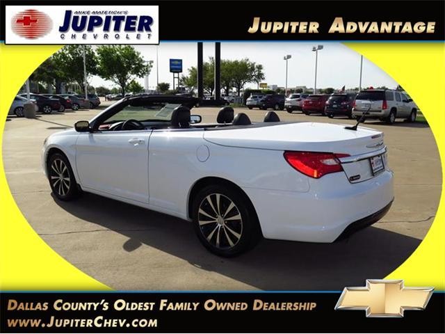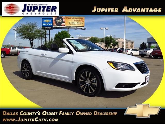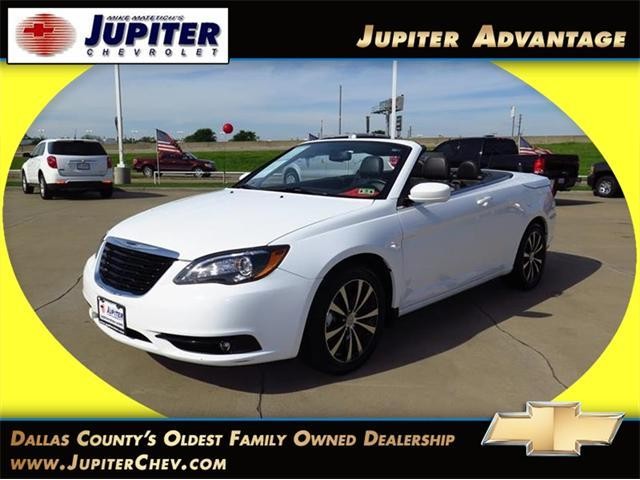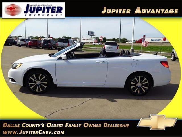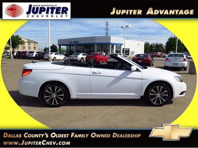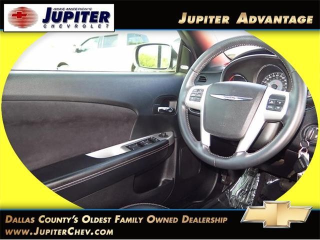 Jupiter Chevrolet means business! Hurry in! Are you interested in a simply outstanding convertible? Then take a look at this gorgeous-looking 2012 Chrysler 200. It is nicely equipped with features such as 4-Wheel Disc Brakes, 6 Speakers, ABS brakes, Air Conditioning, Alloy wheels, Anti-whiplash front head restraints, Auto-dimming Rear-View mirror, Automatic temperature control, Brake assist, Bumpers: body-color, CD player, Convertible roof lining, Convertible roof wind blocker, Delay-off headlights, Driver door bin, Driver vanity mirror, Dual front impact airbags, Dual front side impact airbags, DVD-Audio, Electronic Stability Control, Four wheel independent suspension, Front anti-roll bar, Front Bucket Seats, Front Center Armrest w/Storage, Front fog lights, Front reading lights, Fully automatic headlights, Garage door transmitter, Glass rear window, Heated door mirrors, Heated front seats, Illuminated entry, Leather Trimmed Bucket Seats, Low tire pressure warning, MP3 decoder, Outside temperature display, Panic alarm, Passenger door bin, Passenger vanity mirror, Power convertible roof, Power door mirrors, Power driver seat, Power passenger seat, Power steering, Power windows, Radio data system, Radio: Media Center 430 CD/DVD/MP3/HDD, Rear anti-roll bar, Rear window defroster, Remote keyless entry, Security system, Speed control, Speed-Sensitive Wipers, Steering wheel mounted audio controls, Tachometer, Telescoping steering wheel, Tilt steering wheel, Touch Screen Display Monitor, Traction control, Trip computer, and Variably intermittent wipers. Have one less thing on your mind with this trouble-free 200. Ask us about the free lifetime powertrain limited warranty, alloy wheel protection, door ding protection, windshield repair, interior repair protection, $500 additional trade-in appraisal, Jupiter's best value guarantee, free yearly appraisal and safety inspection that come included with every new vehicle purchase.