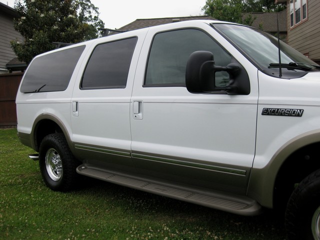 Up for auction is a 2 Owner CarFax Certified 2002 Ford Excursion LIMITED 4x4 with a 7.3 Power stroke turbo diesel engine and an automatic transmission with only 114K on it. This Excursion starts great, runs awesome and has a lot of power. The power stroke motor sounds great and runs solid. The transmission shifts great and also feels solid, like a new one. This truck looks really good, it’s been taken good care mechanically and cosmetically. This Ford comes with the LIMITED trim that comes with tan leather seats, power seat, memory seat, HEATED SEATS, dual A/C, Dual climate controllers, 3rd row seat, TV/dvd, nerf bar, back up sensors, 2 tone paint  and much more. The exterior is in excellent shape. The interior is also in excellent shape. I have both keys for this vehicle. I can say enough about this car! Extremely clean.. would be hard to find one cleaner than this one!! I have tried to present this SUV to best of my abilities and with plenty of pictures.  If you have any other questions PLEASE FEEL FREE TO CONTACT US AT TEXASAUTOGROUP@GMAIL.COM OR 713-319-8844.