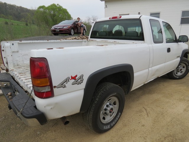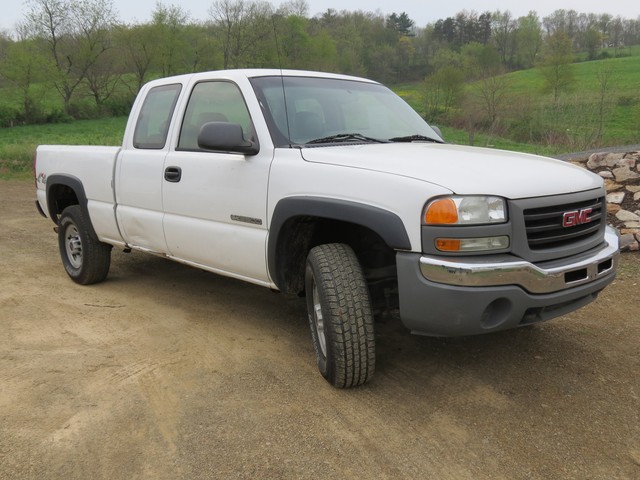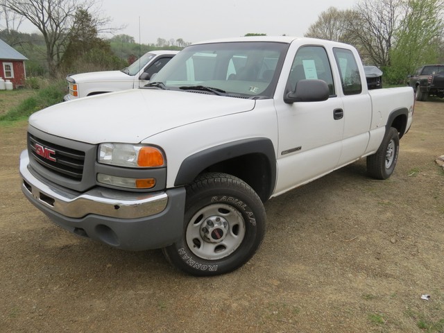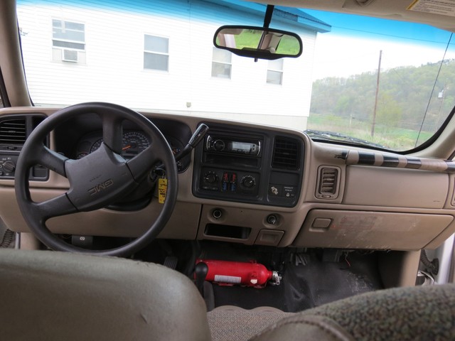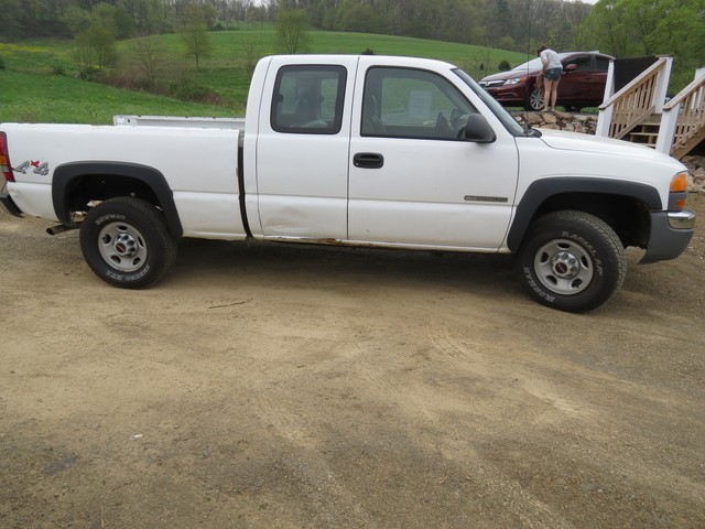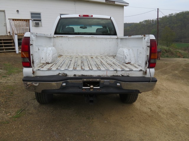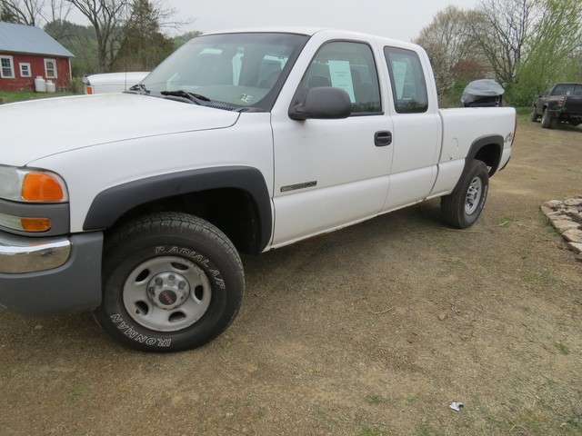 Top Line Motor Cars is proud to offer this 2003 GMC Sierra 2500 for an AS-IS No Reserve auction! This GMC starts right up and the transmission shifts smoothly. The steering feels like new, very tight steering feel. 4x4 works but the linkage should be adjusted. You will notice the truck has a low idle at times, especially in gear it will shut off on occasion but always starts right back up and the engine itself runs excellent. No check engine or abs lights, but the service air bag message does come up on the digital display. Also the exhaust or a heat shield can be heard rattling from underneath. The exterior has obvious dings and dents from being a work truck as well as the typical GM truck rust on the rocker panels. The frame is in excellent shape with nothing more than very light surface rust. Tires are brand new the entire way around. Tail gate is included but does not latch. The interior is in okay shape but is very obviously a work truck with a rip in the drivers seat and the headliner coming loose. The A/C and heat fan does not blow. The rear door handle on the drivers side is cracked. Overall with a little work the truck would make an excellent daily driver. Feel free to ask any questions. Thank you!