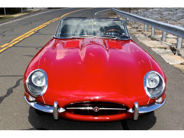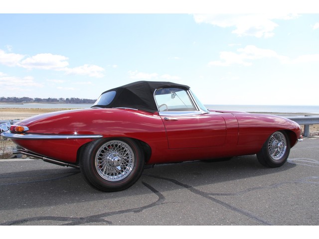 The Classic Car Gallery is proud to offer this stunning, concours  restored 1966 JAGUAR E-TYPE ROADSTER. Finished in RED with a BLACK LEATHER interior, “Ole Red” is one of the most beautifully restored cars we have ever see. Restored by marque specialist Tom Zebrasky at Catz Automotive (coolcatz.com), in Youngstown, OH, where no expense was spared. The body (number 1E12096) was stripped to the bare metal, mounted on a rotisserie, and properly metal-finished with lead to ensure smooth, straight panels. All body parts and chrome were then test-fitted to the body, to ensure a proper fit, before the body was correctly painted and refinished in an elegant RED, with an amazingly deep shine and finish. The brightwork chrome was all triple-plated to the highest of concours standards, for an amazing shine and depth. Restored chrome wire wheels and new tires compliment the rest of the car. The perfection continues to the underside. EVERY NUT AND BOLT HAS BEEN attended to, including plating, correctly finished floors, new suspension, brakes, bushings, etc.