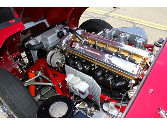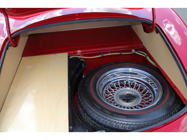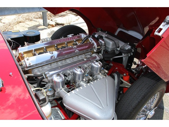 The ORIGINAL, MATCHING NUMBERS 4.2 LITER ENGINE (number 7E11598-9) was rebuilt to factory specifications with new pistons, oil pump, timing chain, bearings, valves, guides, seals etc. The head and carburetors were fully rebuilt, and the driveshaft was properly balanced. As with all aspects of this restoration, New Old Stock parts were used whenever possible. The only deviation from stock is the 5-speed Tremac transmission developed by XK’s Unlimited for this particular car. It increases drivability on our modern roads.
