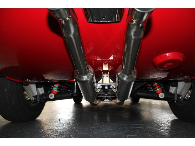 The BLACK LEATHER  interior was fitted with all new, custom-tailored materials, including new leather seats, carpet, door panels, and dashboard covering. The top bows were fully restored before being fitted with a new black convertible top that was custom-sewn and fitted as per original specifications. All dashboard instruments, switchgear, and knobs were properly restored. The trunk has been restored to as new condition as well, the rear wood floors were cut from marine plywood, and finished to the level of furniture.