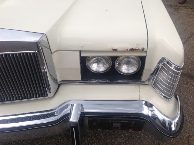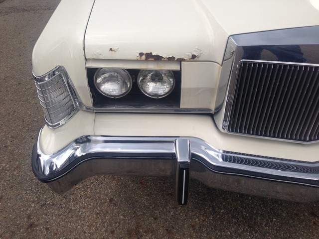 Today we have for you a 1975 Lincoln MK IV  finished in Alpine white with White interior,Adult Owned non-smoker in fair condition.The body has some rust but the undercarraige is solid,The paint is decent for being original and there no major scuffs or dents.The motor is strong and the transmission is smooth the heat work greats.This is a 3 owner  great running vehicle,With original 43000 miles with the title stating the same.Below we will list what requires attention.