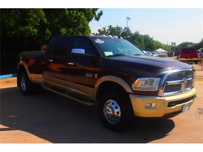 Ram 3500 Laramie Longhorn Mega Cab, 4D Crew Cab, Cummins 6.7L I6 Turbodiesel, 4WD, Light Frost Beige/Canyon Brown w/Premium Leather Bucket Seats or Premium Leather Bucket Seats (DJ), ** NAVIGATION / NAVI / GPS **, **SUNROOF / MOONROOF **, Clean Carfax, and ONE OWNER. At Joe Myers Ford-Lincoln we take great pride in rigorously inspecting each used car and bringing them current with all of their manufacturers scheduled maintenance. We also take pride in having the cleanest pre-owned cars in Houston, as a matter of fact, almost all of our vehicles come with new tires. We invite you to come check them out yourself and discover the Joe Myers Ford-Lincoln difference, where our salesmen aren't paid on commission but rather on whether you are satisfied customer. Tired of the same ho-hum drive? Well change up things with this stout 2013 Dodge Ram 3500. You, out on the road in this wonderful, one-owner Ram 3500, would look so much better than it sitting here, all sad and lonely, on our lot. It's only known one loyal master, but now it's ready to be loved again. Come get it! Joe Myers Ford-Lincoln proudly serving the following communities Jersey Village, Cypress, Tomball, Katy, The Woodlands, Spring, Houston. CALL JOE SNOW @ 832-630-9281
