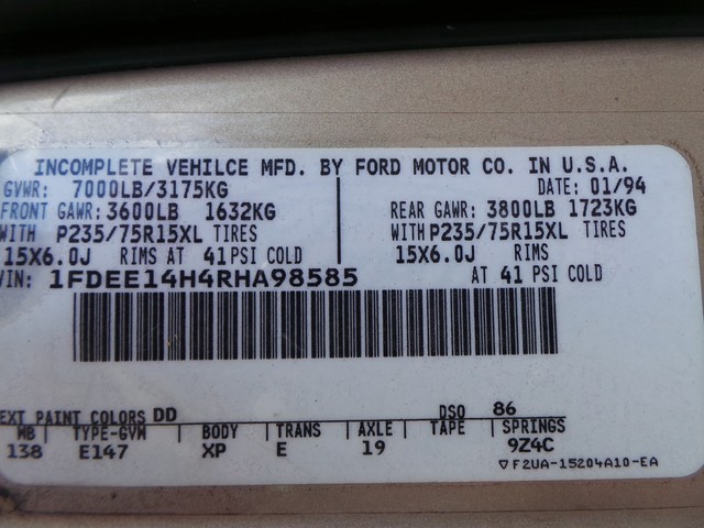 • VIN: 1FDEE14H4RHA98585