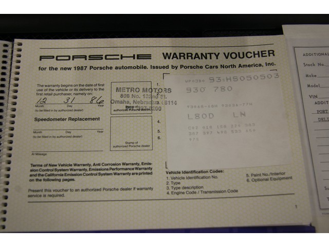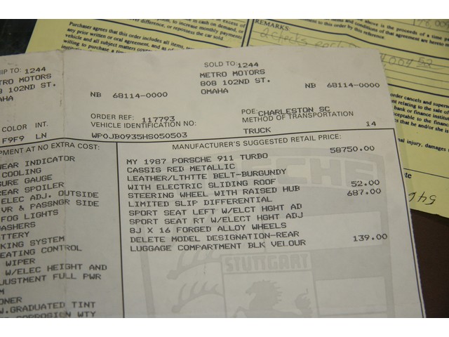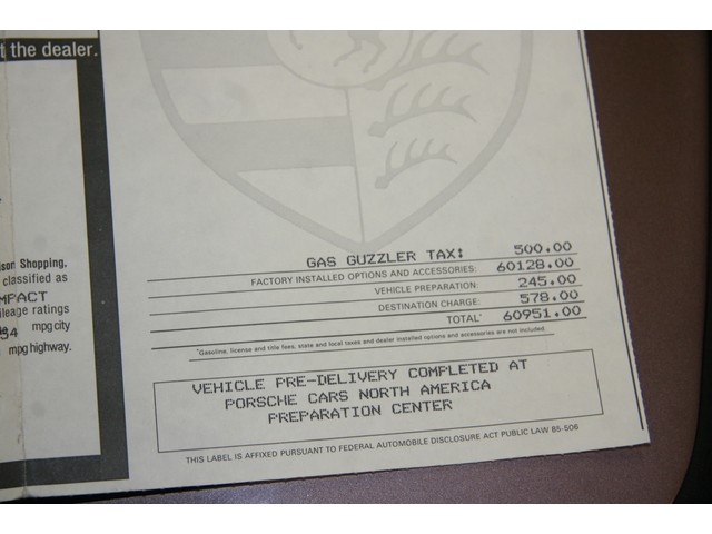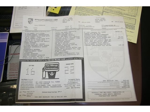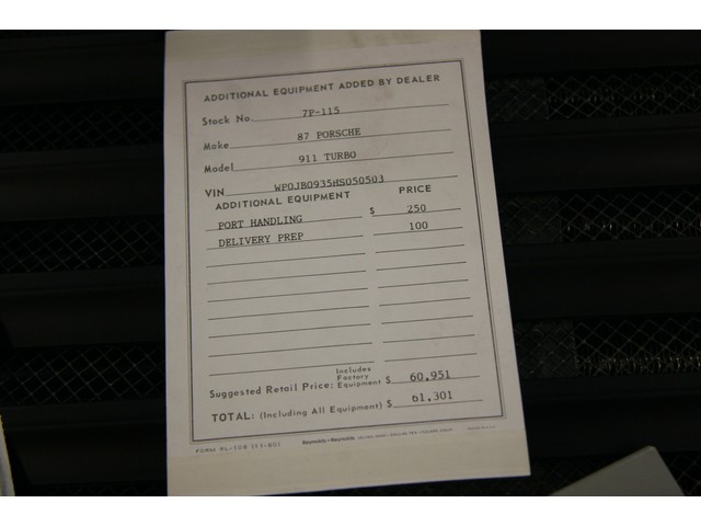 1987 PORSCHE 930 TURBO ONLY 20,342 ORIGINAL MILES WITH ORIGINAL WINDOW STICKER!