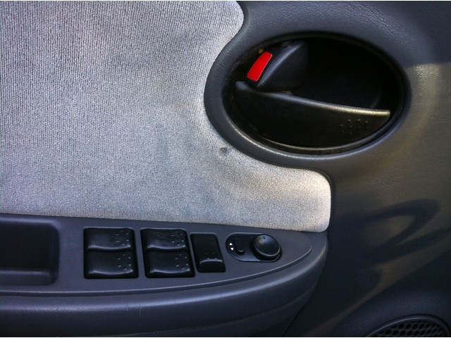 The Interior shows Minimal Wear.  However, there is some staining on the rear seats and staining with small tear in the front carpet.  Front right side of dash is cracked.  Some scraches on the body that might buff out with compound wax. (you can see all of this in the pictures).  The power mirror button does not work.  The Display for the stereo sometimes takes time to come on, but the stereo works fine.
