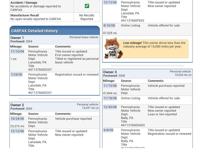 We often use these services to check a vehicles background.  Carfax and Autocheck are wonderful services,  but they have their limitations.  Many times they will show more “owners” than we may state a vehicle has had.  This is because they are an information service only.  They have never seen the car, owned the car,  and have no other information about the car than what is reported from different agencies.  All of this information is originally hand entered into their databases at their source and mistakes and inconsistencies will occur !  For example when a dealer such as ourselves purchases a vehicle they may pick it up as a new owner when this is of course not the case as dealers are not end users.  Also they often contain mileage errors and inconsistencies that appear to make little sense.  Just like any computer generated information report you need to know how to read the report & when to read between the lines. Having seen thousands of these over the years we can help you understand the information listed in these reports,  just ask.