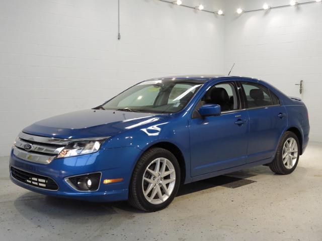 Blue 2012 Ford Fusion SEL Certified Pre-Owned!  2.5 Litre Front Wheel Drive With Automatic Transmission.  Power Sunroof, Power Leather Seats, Power Windows, Power Locks and Power Heated Mirrors.  Heated Front Seats, Automatic Headlights, AM/FM Stereo, CD, MP3, Satellite Radio, Navigation and Steering Wheel Mounted Audio Controls.