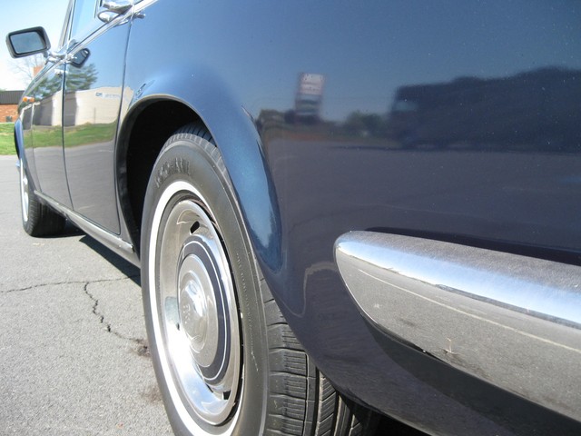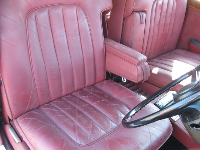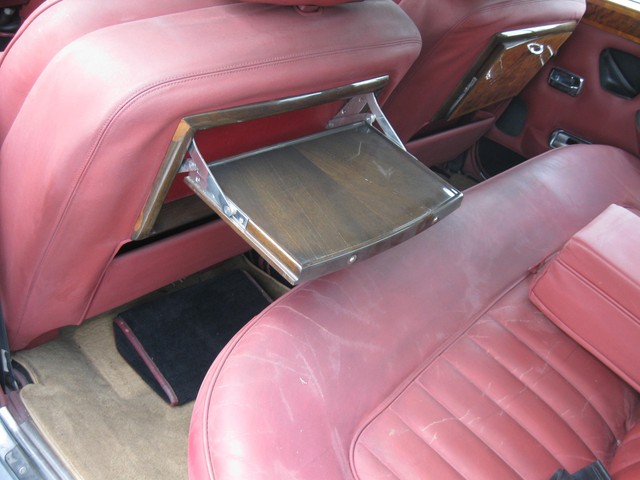 She looks good from ten feet but as we move closer we see that the paint on the left rear quarter is slightly off from the rest of the car (see pictures). The interior is in good shape but the leather feels dry to the touch and probably needs to be treated with some conditioner. The rear footrests and snack trays are intact and the headliner is in good condition. All the mirrors are in place and the dash is very nice.