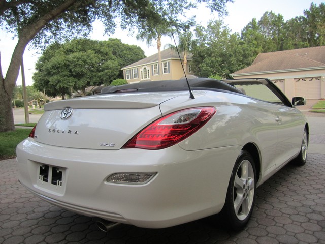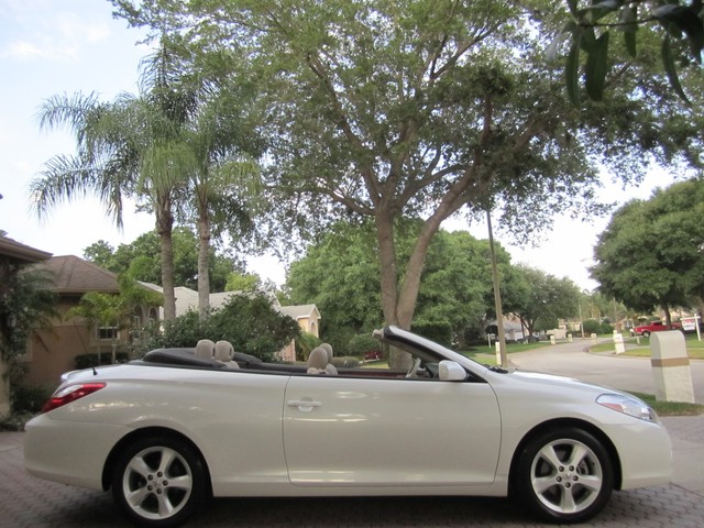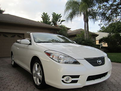 **********************PLEASE WATCH THE VIDEO AT THE END OF THIS DESCRIPTION AND TAKE A LOOK AT ALL THE PICTURES....THIS IS A GORGEOUS 2007 TOYOTA SOLARA SLE CONVERTIBLE, THAT YOU WILL JUST LOVE LOVE LOVE, VERY DEPENDABLE, AND RELIABLE, AND SAFE, THESE TOYOTA SOLARA'S ARE ONE OF THE BEST CONVERTIBLES OUT THERE. THIS ONE HAS ALWAYS BEEN METICULOUSLY TAKEN CARE OF SINCE THE ORIGINAL OWNER BOUGHT IT BRAND NEW AT (GERMAIN TOYOTA) AND HAS HAD IT SERVICED THERE AS WELL. THE AUTO-CHECK WE RAN STATED THAT IT IS A (1 OWNER) IT HAS A CLEAN CARFAX(CARFAX SHOWS ONE OWNER FOR FIRST TWO MONTHS AND THEN SECOND OWNER), NON-SMOKER, LOOKS LIKE IT HAS NEVER EVEN BEEN EATEN IN OR CUSSED IN, IT IS IMMACULATE...THE BEST COLOR COMBINATION THAT YOU CAN BUY, THE GORGEOUS (PEARL/WHITE OVER THE CASHMERE INTERIOR, WITH THE TAN TOP, THIS BEAUTIFUL SOLARA SLE CONVERTIBLE IS JUST STUNNING. YOU WON'T FIND ONE THAT HAS BEEN TAKEN CARE OF ANY BETTER, AND IT IS IMMACULATE INSIDE AND OUT...THE INTERIOR IS IN EXCELLENT CONDITION, IT IS LIKE NEW...IT HAS SOME OF THE MOST COMFORTABLE LEATHER SEATS THAT YOU WILL EVER SIT IN, WITH DRIVER'S POWER SEAT AND BACK LUMBAR SUPPORT...HAS THE UPGRADED  JBL PREMIUM STEREO SYSTEM...6-DISC CHANGER, ...WOODGRAIN THAT IS PERFECT...HOME-LINK...BLUETOOTH, AUTO DIMMING REAR-VIEW MIRROR... HEATED SEATS...TRACTION CONTROL...POWER WINDOWS AND LOCKS, TILT, CRUISE...LEATHER STEERING WHEEL...SIDE AIR-BAGS...AND MUCH MUCH MORE...IT IS LOADED WITH ALL THE OPTIONS. THE EXTERIOR OF IT IS ALSO IN EXCELLENT CONDITION, THE BEAUTIFUL PEARL WHITE FACTORY PAINT LOOKS AND SHINES LIKE NEW. THE POLISHED ALLOY WHEELS ARE LIKE BRAND NEW, AND COMES WITH MICHELINS TIRES, THE BRAKES ARE GREAT, AND IT NEEDS NOTHING. IT HAS ALWAYS BEEN SERVICED AT THE TOYOTA DEALERSHIP SINCE BRAND NEW, AND IT HAS JUST BEEN SERVICED. IT WAS A (NEW-CAR TRADE-IN) AT NAPLES ACURA, SHE IS GOING TO MISS THIS ONE I AM SURE. THESE 3.3 LITERS MOTORS ARE ONE OF THE MOST RELIABLE MOTORS TOYOTA EVER MADE, AND THEY GET GREAT GAS MILEAGE, AND RIDE AND HANDLE AS NICE AS ANYTHING YOU WOULD WANT, THIS SOLARA DRIVES FANTASTIC, YOU WILL LOVE IT. YOU WILL GET ALL THE BOOKS AND MANUALS, AND EVEN 3 KEYS, ONE VALET AND 2 FOBS AND THE KEY CODES, ALL THE TOYOTA CARPETED FLOOR MATS, AND IT EVEN HAS THE CONVERTIBLE BOOT FOR THE BACK OF IT, AND A TRUNK MAT AND THE CARGO NET. BRAND NEW SPARE TIRE. THE CONVERTIBLE TAN TOP IS PERFECT AND LIKE NEW, A LITTLE DAMP FROM WASHING THE CAR IN PHOTOS BUT IT IS FLAWLESS, GLASS REAR WINDOW WITH DEFOGGER. FOLKS IF YOU ARE LOOKING FOR A GREAT CONVERTIBLE YOU HAVE FOUND IT, THIS ONE IS VERY VERY NICE AND THE NEW OWNER WILL BE JUST AMAZED AT HOW NICE IT IS.**********PLEASE WATCH THE VIDEO AT THE END OF THIS DESCRIPTION AND TAKE A LOOK AT ALL THE PICTURES, AND IF YOU HAVE ANY QUESTIONS PLEASE CALL US AT 727-460-4283 FOR JACK OR CAROL AT 727-798-7161 OR EMAIL US, MAY HAVE A LITTLE MORE MILES ON IT BY THE END OF THE AUCTION, MY WIFE LOVES DRIVING THESE. THANK YOU GOD BLESS YOU AND HAVE A FANTASTIC DAY. WE APPRECIATE YOU AND LOOK FORWARD TO DOING BUSINESS WITH YOU, CONGRATULATIONS ON FINDING THIS "DIVIND FIND"...IF YOU WOULD LIKE TO KNOW WHAT YOU CAN BUY IT NOW FOR OR WHAT THE LOW RESERVE IS JUST GIVE US A CALL. GOD BLESS YOU AND HAVE A GREAT DAY.