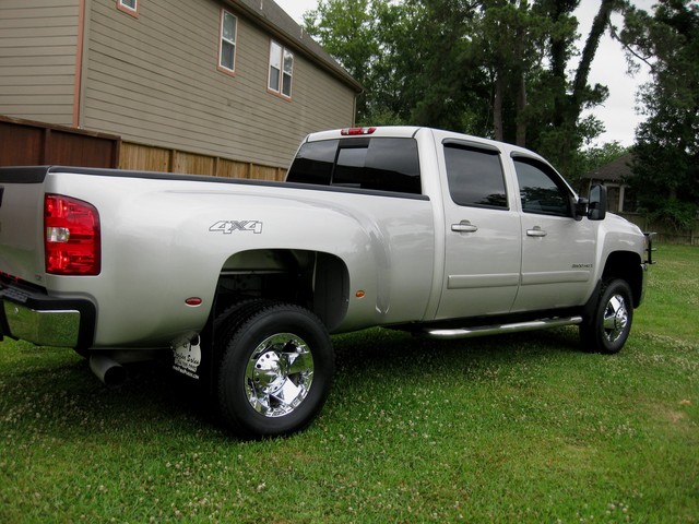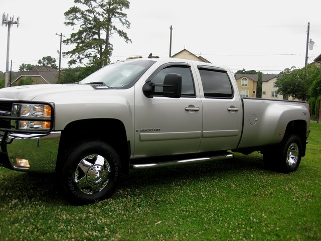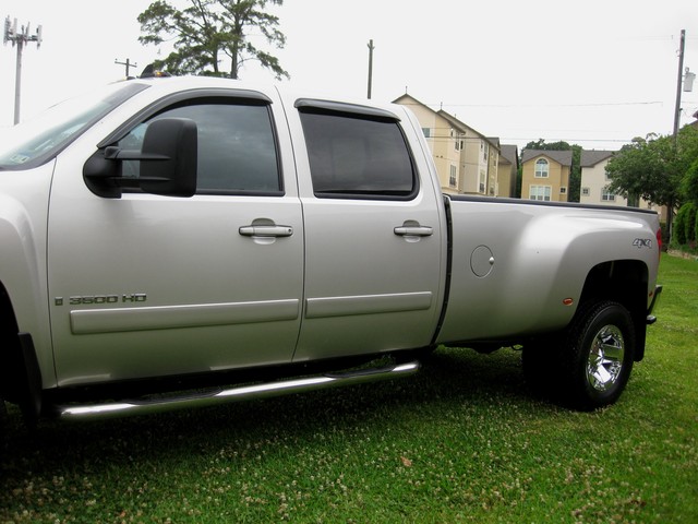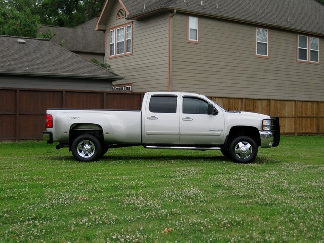 You are looking at a silver on black 2 owner carfax certified 2008 Chevrolet Silverado HD 3500 ( LTZ ) 4x4 diesel truck with the Duramax diesel engine and Allison 6 speed automatic transmission. It only has 102K on it and still looks like a brand new truck! This truck is a crew cab dually. It comes with the LTZ package ( NAVIGATION, leather seats, heated leather seats, dual power seats, dual climate control, chrome package, onstar TV/DVD and much more ). This truck in and out is in perfect shape. This truck is fully loaded with all options available from manufacture. All 6 tires are in great shape and have 75% tread left on them. I have tried to present this truck to the best of my abilities, and with plenty of pictures. PLEASE CONTACT US AT TEXASAUTOGROUP@GMAIL.COM OR 713-319-8844.