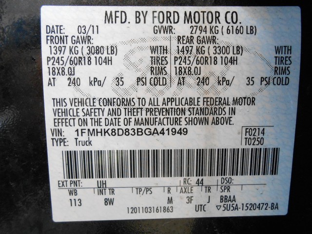 • VIN: 1FMHK8D83BGA41949