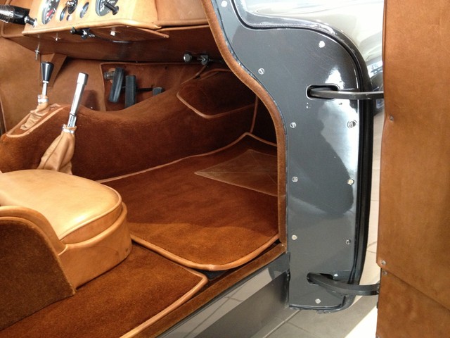 The car is finished in Battleship Grey with brown leather upholstery. There are rare C-Type-style lightweight seats, Brooklands screens, leather bonnet strap, outside fuel filler, Lucas tri-beam headlamps, and auxiliary spotlights. In August of 2009, the car was shown at the Carmel-By-The-Seas Concours where it earned Best in Class honors. In 2010, it was shown at the Amelia Island Concours and the Belmont Concours d'Elegance. In 2011, it participated in the Presidio of San Francisco Concours d'Elegance. The car has completed both the California Mille and the Colorado Grand without incident. Since its restoration, the car has been driven just 3,000 miles. We have total documentation of the restoration from Mike Wilson's Restorations. We also have documentation of the $15,000 spent on minor items in 2013.