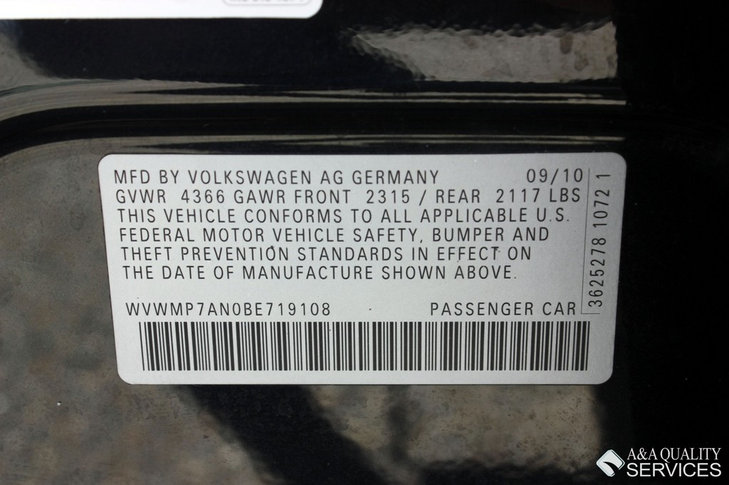 Transmission: Automatic Engine: 4 Cylinder 2.0T Liter VIN: WVWMP7AN0BE719108