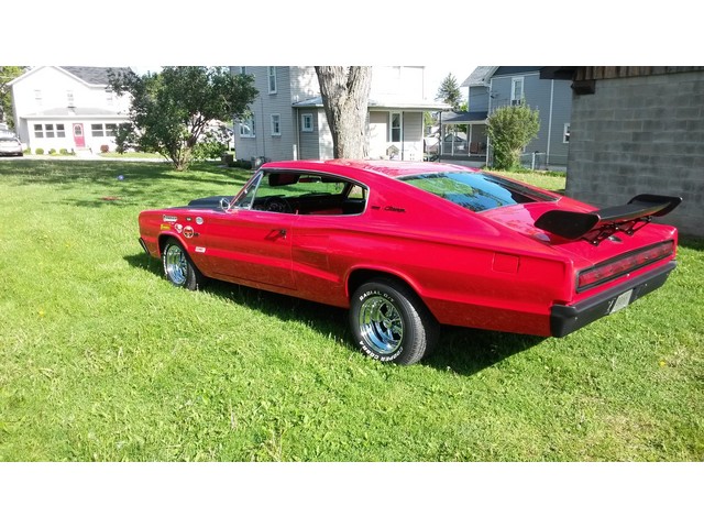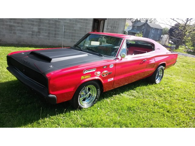 P 2 9550 on rear p 235 60 on front ss Craigers 15 by 10 on rear 15 by 8 on front water oil alternator gauges with new caps 10000 rpm tach GT grant steering wheel and adapter kit Mopar valve covers and air cleaner gasket valve cover bolts interior all new carpeting seat foam seat covers motor has been freshened with new plugs wires electronic box water pump gas pump battery all new belts and hoses transmission has also been serviced with new filter and fluid valve body there is a lot of little odds and ends like fuel lines plastic wrap wires and hoses stickers nuts and bolts water stuff like that new gas tank new sending unit trunk trunk Jack sticker used to paint 2 gallon a viper red paint 2 quarts of hot rod black gallon and a half a base coat clear coat gas filter to mufflers to turn down pipes alternator headlight relay headlights charge the air conditioning rebuilt carburetor door locks headlight motors Jack cover trunk rubber bumpers door pin kit rear spoiler hood pins stickers door sticker radiator cap battery tray battery terminals arm rest armrest backings rear chrome front and back rubber bumpers trunk carpe charge air car has been completely undercoated classic hood scoop window cranks trunk lock door hinges passenger front and rear floor pans hood pins shifter cover battery wiper blades air shock extenders and lines the car was painted basecoat clearcoat Viper red 5 coats of red for coats of clear coat car was then wet sanded and buffed to a showroom finish hood and scoop were painted hot rod black along with front and rear bumpers and emblems all chrome was deleted ground down on the quarters welded sanded and made straight and smooth I also have black plate build sheet fender tag and all records up to 1991 when carpet was last registered this is original big block 383 premium package what factory ac that blows cold here is a breakdown of the VIN number X Dodge Charger p Premium Package 29 2 door sports coupe hardtop G 383 6 1966 1 Lynch Road Michigan this car is 100 ready to go fly in and drive it home or I can set up a cheap transportation for you if you look at the back window it is missing one piece of trim if I can't find it in the shop I will buy brand new for the rear window little under $400 that will be installed with car before delivery if you look at the pictures I think they speak for themselves I do have video from where the car was started from in the middle and at the end step by step the motor running all of it see for yourself all in all I think this is one of the nicest 66 Chargers around that's my opinion you decide for yourself good luck bidding any questions you can call Tim at  814 541 2561 good luck bidding