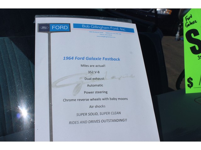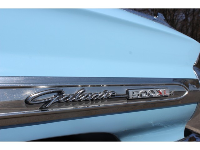 The wheels are in excellent condition. The tires are BRAND NEW ALL THE WAY AROUND! (Tire size: P225/70ZR15). The interior of the Ford is very clean. The seats and dashboard are in great shape. The carpet and headliner are in very good condition and show normal wear. The interior on the Ford is a 8.5 out 10. The paint on the Galaxie looks great and is a real eye catcher! The exterior on the Ford is clean. The paint shines nicely and is glossy.  The O is missing on the Ford emblem on the hood. Some of the chrome shows some minor pitting. I would rate the exterior an 8.5 out of 10. This car is truly one of a kind!