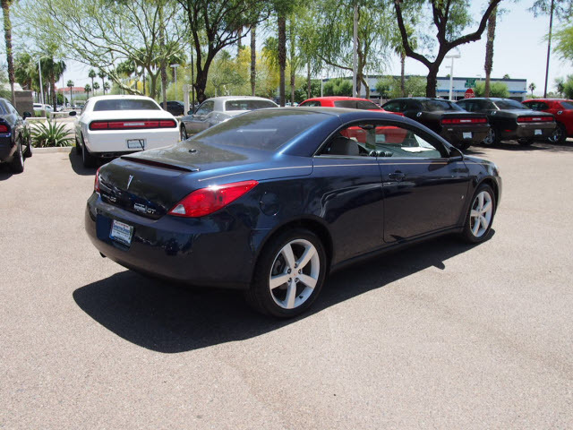 This outstanding example of a 2009 Pontiac G6 2dr Conv GT w/1SA *Ltd Avail* is offered by Superstition Springs Chrysler Jeep Dodge. Drive home in your new pre-owned vehicle with the confidence of knowing you're fully backed by the CARFAX Buyback Guarantee. If you're a driving enthusiast, you'll be grateful for the chance to drive this G6 2dr Conv GT w/1SA *Ltd Avail* convertible. You'll discover what millions of convertible owners have known for years -- nothing beats an open air experience. Gently driven doesn't even begin to explain how lovingly cared for this ultra-low mileage vehicle has been. And with our WARRANTY FOREVER, this is one EXCEPTIONAL DEAL! More information about the 2009 Pontiac G6: The 2009 Pontiac G6 takes a high road in an attempt to balance efficiency, comfort and sportiness. It manages to appeal to those who value each. It's also one of few cars in its class to offer the two-door coupe body style. The convertible model ranks as the lowest-priced vehicle with a power-folding hardtop. Strengths of this model include fuel efficiency with the 4-cylinder engine, Unique folding hardtop convertible, standard side and curtain air bags, and solid acceleration with the V6-equipped models.