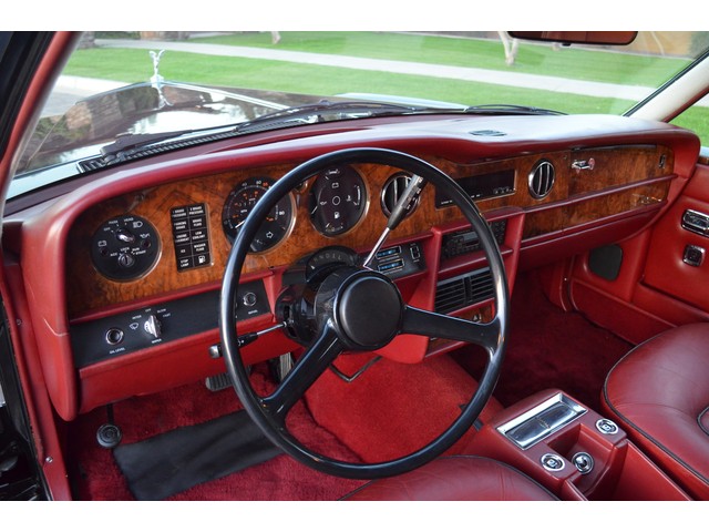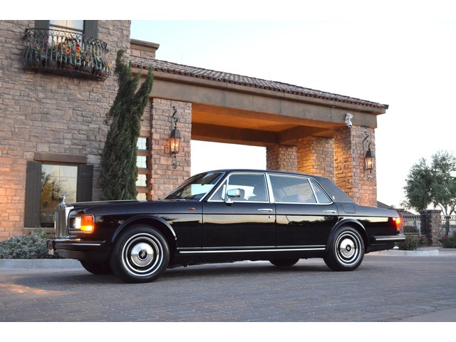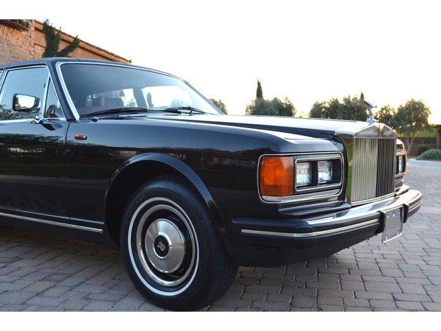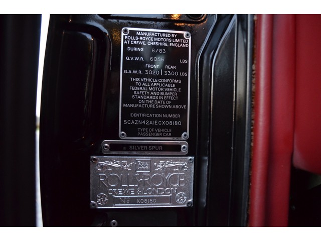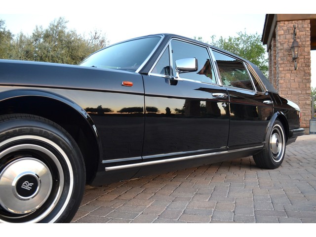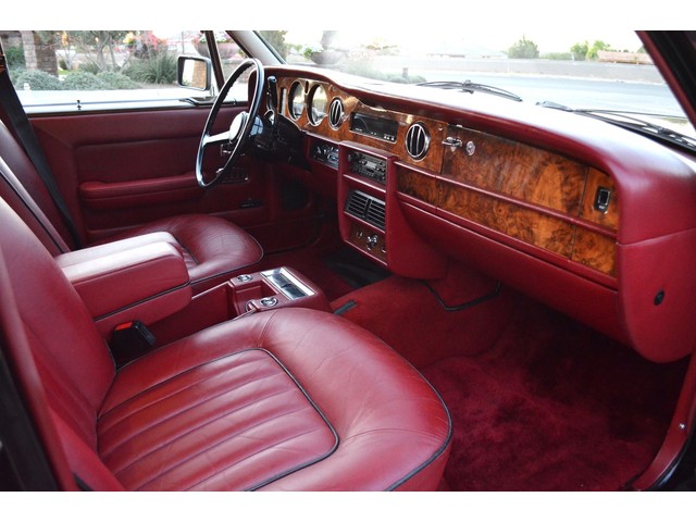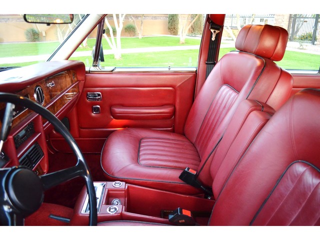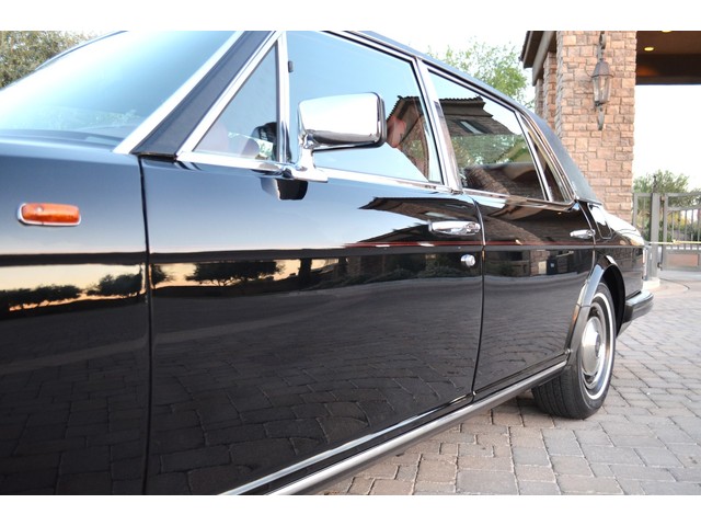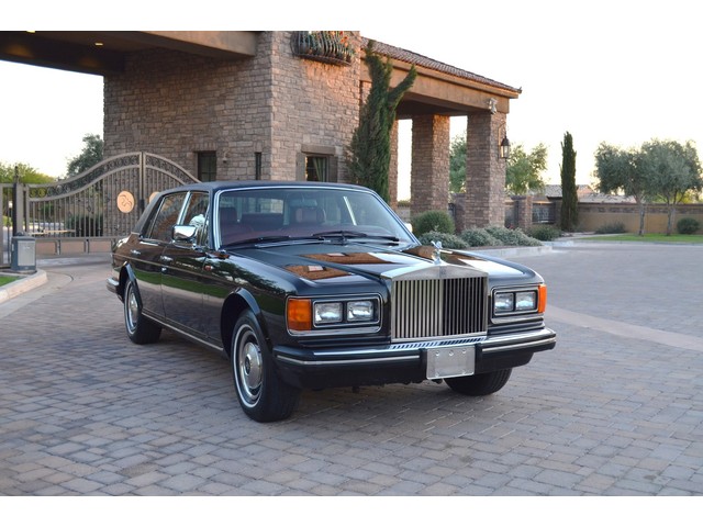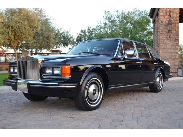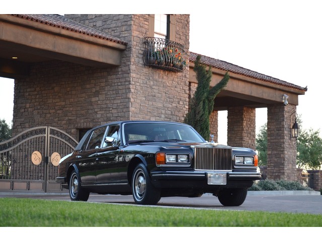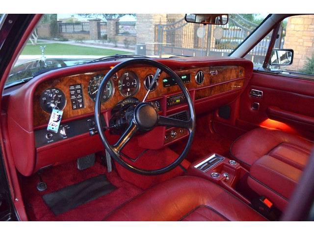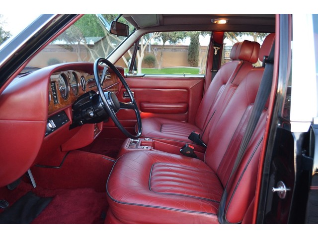 European Motor Studio is proud to offer this exceptional 1 owner 1984 Rolls Royce Silver Spur Saloon finished in a stunning color combination of Masons Black over Burgundy hides with contrasting Black piping and Cherry Red Wilton Wool carpets. This Silver Spur left the Crewe production line in August of 1983 and was invoiced to Rolls Royce North America. The car was then shipped to Tom Peyette Jaguar/Rolls Royce in Louisville Kentucky where it sold to its first owner on April 24, 1984. The car has been in the care of the first owner until European Motor Studio brought the car to Arizona. This is exceptional one owner car has been properly maintained by the Rolls Royce dealership in Kentucky as evident from the records, dealer books stampings and the condition of the car. The Masons Black paint is stunning; it retains a beautiful original luster and shows like a car a quarter of the age. There are no dents, scratches, scrapes or any paint damage anywhere on the car (one finger nail size ding on the front hood above the passenger size headlight) or any paint blistering or fading. The exterior chrome, glass and trim are all in outstanding condition showing no signs of damage or issues and the original factory Black everflex top is in near perfect condition. The Burgundy leather hides show very well with extremely minimal creasing and wear. The leather is still very soft and supple and free from any damage or discoloration. The Chery Red Wilton Wool carpets are in immaculate condition as well as the original factory Cherry Red Mouton throw rugs. All of the dash leather, door panels, headliner and center console are all in outstanding original condition with almost no wear. The wood trim on the dashboard and doors is in excellent condition and free from any fade or cracking (very obvious the car has been garaged all of its life). Even the door wood rails are still in beautiful condition without any cracking. This Silver Spur starts right up and idles beautifully and does not smoke or leak any fluids. The car shifts into gear smoothly without any hesitation or noises and accelerates beautifully. The engine pulls very strong and is very smooth. The transmission shifts through all of the gears with ease and the suspension and steering feel very tight and precise without any noises or issues. The ride quality of this Rolls Royce feels like the day it left the showroom floor, it has an exceptionally smooth and quiet ride. The brakes feel very smooth and solid and free from any squeaking or fading. All of the electronics on the car are in proper working order including the mirrors, all four windows, locks, power antenna, original radio, windshield wipers, headlights, taillights, revers lights, side marker lights, brake lights, interior lights, dash lights, engine light and trunk light. Even the onboard computer is in proper working order and not pixilated like most. The AC has just had a complete over haul and blows ice cold on all of the fan speeds. The heater works well and blows as it should. The suspension and the brakes have also had major work done as well. The Michelin tires have about 65% tread life. This Silver Spur comes with its original owners handbook, service book and sales brochure along with its original owners warranty card. Also present is the original spare, original jack, original Rolls Royce tool kit, service history and records and a clean title and carfax with box A actual miles. There are no signs of any prior damage or paint work anywhere on this Silver Spur and absolutely no rust or corrosion of any kind anywhere on the car. This Rolls Royce is an exceptional quality Silver Spur that has been lovingly maintained by its original owner since day one.