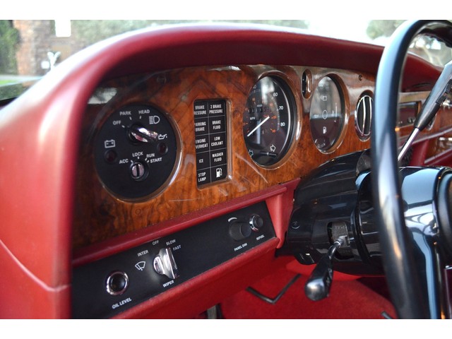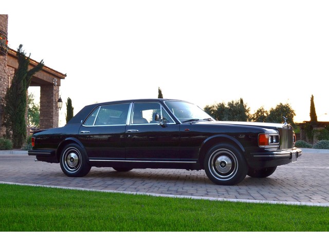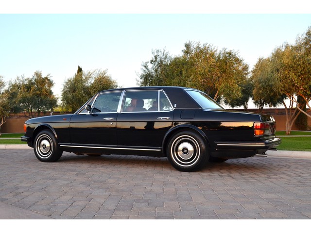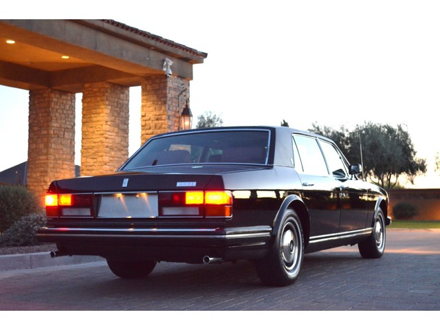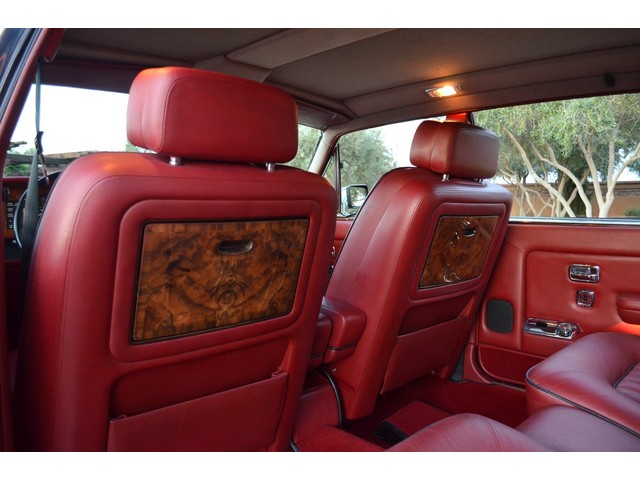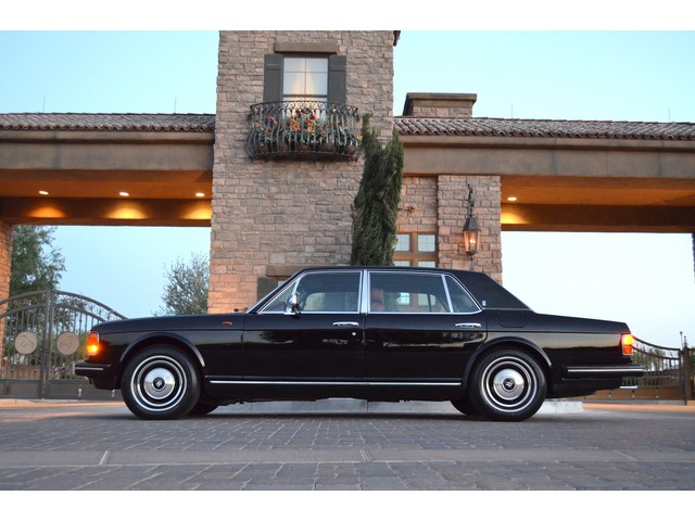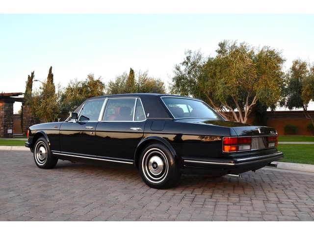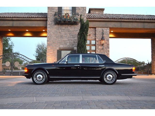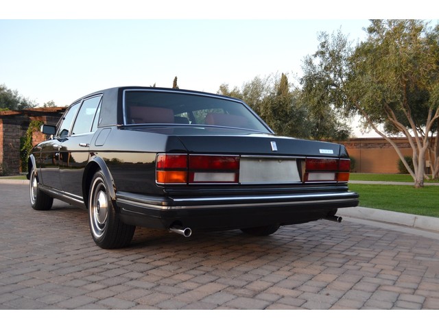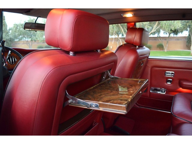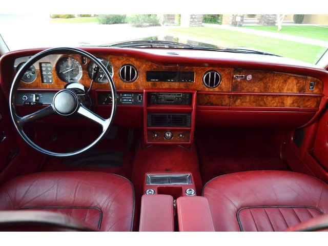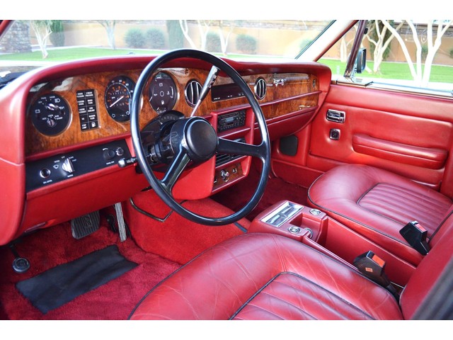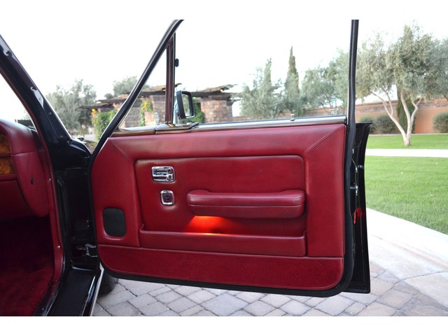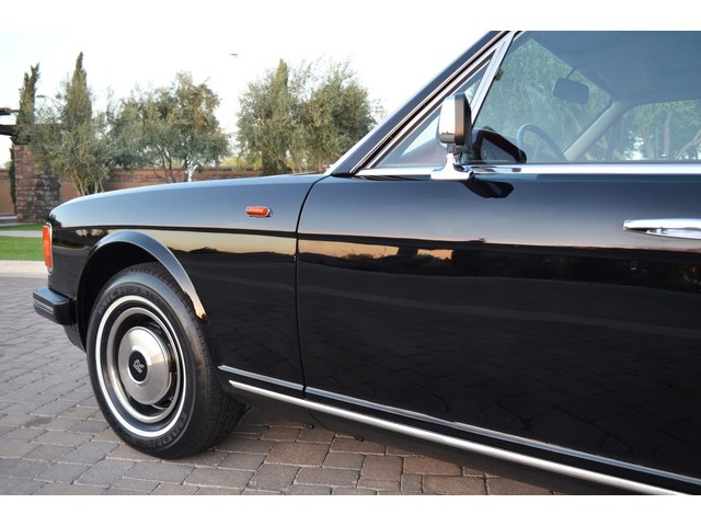 European Motor Studio is proud to offer this exceptional 1 owner 1984 Rolls Royce Silver Spur Saloon finished in a stunning color combination of Masons Black over Burgundy hides with contrasting Black piping and Cherry Red Wilton Wool carpets. This Silver Spur left the Crewe production line in August of 1983 and was invoiced to Rolls Royce North America. The car was then shipped to Tom Peyette Jaguar/Rolls Royce in Louisville Kentucky where it sold to its first owner on April 24, 1984. The car has been in the care of the first owner until European Motor Studio brought the car to Arizona. This is exceptional one owner car has been properly maintained by the Rolls Royce dealership in Kentucky as evident from the records, dealer books stampings and the condition of the car. The Masons Black paint is stunning; it retains a beautiful original luster and shows like a car a quarter of the age. There are no dents, scratches, scrapes or any paint damage anywhere on the car (one finger nail size ding on the front hood above the passenger size headlight) or any paint blistering or fading. The exterior chrome, glass and trim are all in outstanding condition showing no signs of damage or issues and the original factory Black everflex top is in near perfect condition. The Burgundy leather hides show very well with extremely minimal creasing and wear. The leather is still very soft and supple and free from any damage or discoloration. The Chery Red Wilton Wool carpets are in immaculate condition as well as the original factory Cherry Red Mouton throw rugs. All of the dash leather, door panels, headliner and center console are all in outstanding original condition with almost no wear. The wood trim on the dashboard and doors is in excellent condition and free from any fade or cracking (very obvious the car has been garaged all of its life). Even the door wood rails are still in beautiful condition without any cracking. This Silver Spur starts right up and idles beautifully and does not smoke or leak any fluids. The car shifts into gear smoothly without any hesitation or noises and accelerates beautifully. The engine pulls very strong and is very smooth. The transmission shifts through all of the gears with ease and the suspension and steering feel very tight and precise without any noises or issues. The ride quality of this Rolls Royce feels like the day it left the showroom floor, it has an exceptionally smooth and quiet ride. The brakes feel very smooth and solid and free from any squeaking or fading. All of the electronics on the car are in proper working order including the mirrors, all four windows, locks, power antenna, original radio, windshield wipers, headlights, taillights, revers lights, side marker lights, brake lights, interior lights, dash lights, engine light and trunk light. Even the onboard computer is in proper working order and not pixilated like most. The AC has just had a complete over haul and blows ice cold on all of the fan speeds. The heater works well and blows as it should. The suspension and the brakes have also had major work done as well. The Michelin tires have about 65% tread life. This Silver Spur comes with its original owners handbook, service book and sales brochure along with its original owners warranty card. Also present is the original spare, original jack, original Rolls Royce tool kit, service history and records and a clean title and carfax with box A actual miles. There are no signs of any prior damage or paint work anywhere on this Silver Spur and absolutely no rust or corrosion of any kind anywhere on the car. This Rolls Royce is an exceptional quality Silver Spur that has been lovingly maintained by its original owner since day one.