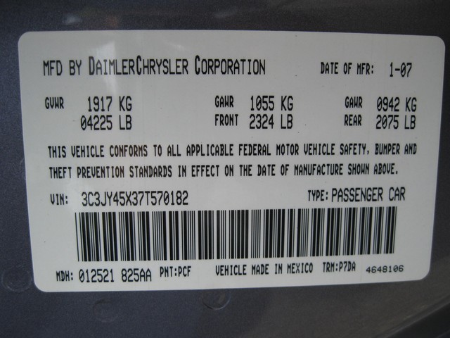 • VIN: 3C3JY45X37T570182