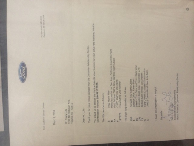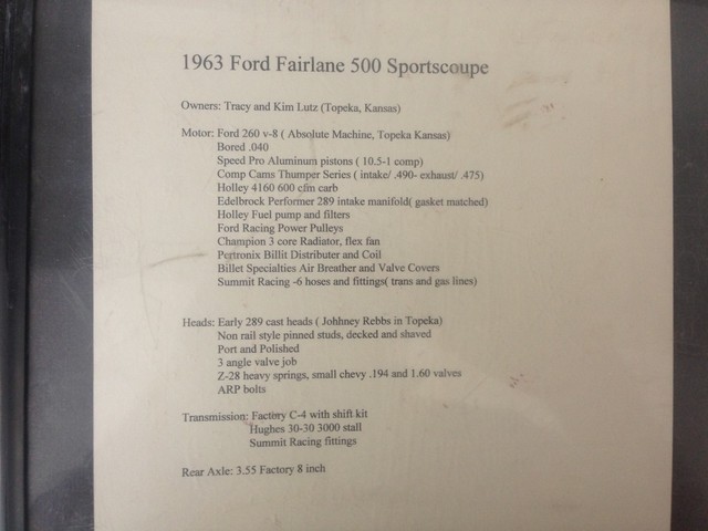 1963 FAIRLANE 500 Sports Coupe Orginal 260 V8 motor