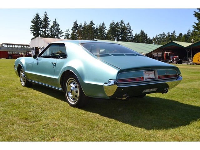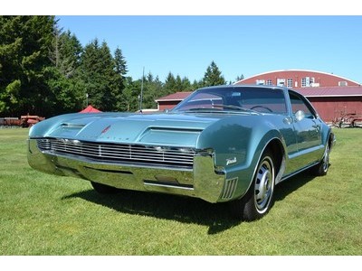 This first generation Toronado 2 door coupe is an unmolested original example with 92,000 original miles. Deluxe options include air conditioning, power seat, power windows, tilt/telescope wheel, cruise control and cornering lamps. The exterior color is original Ocean Mist and the interior color is turquoise. The Olds is well-maintained, extremely well detailed and has been painted once to the highest level. The incredible and spectacular interior is original. This is one of the finest examples of this car available anywhere at any price.
