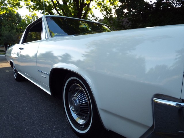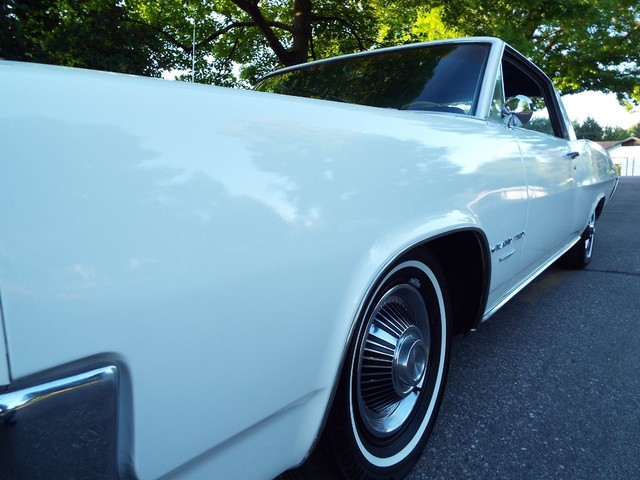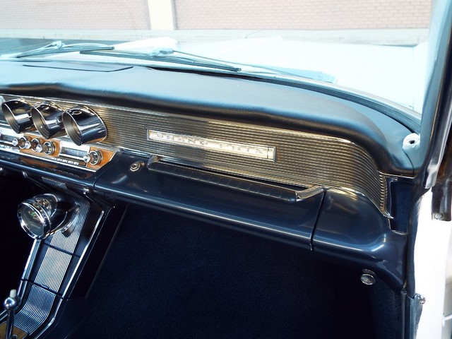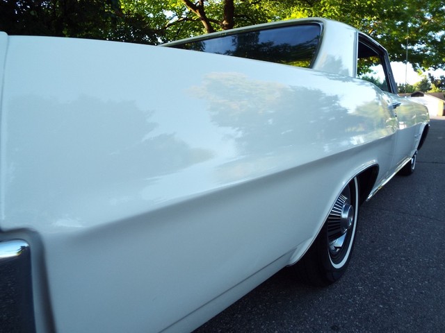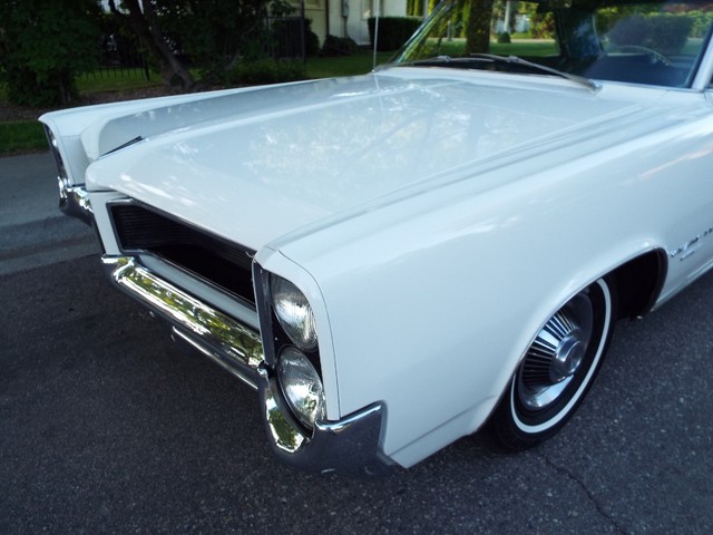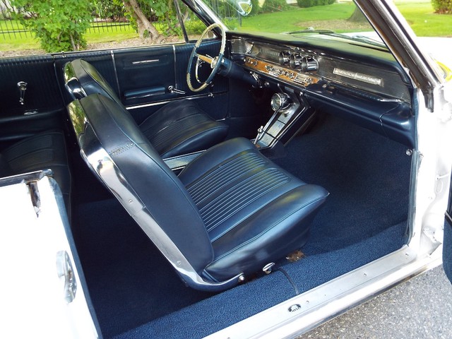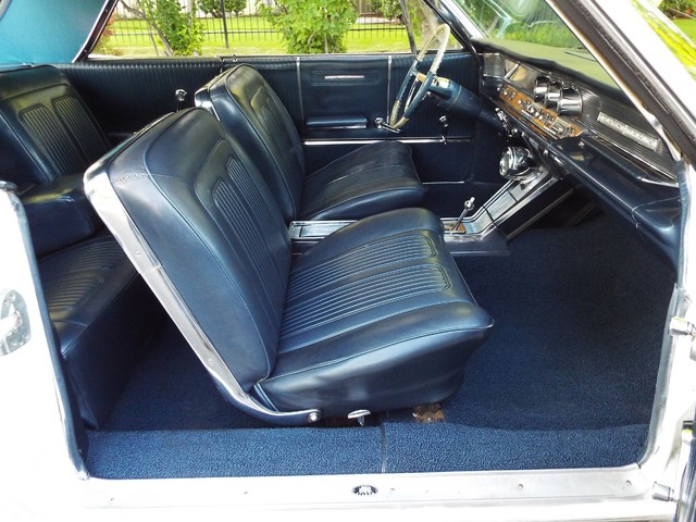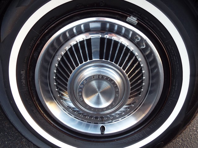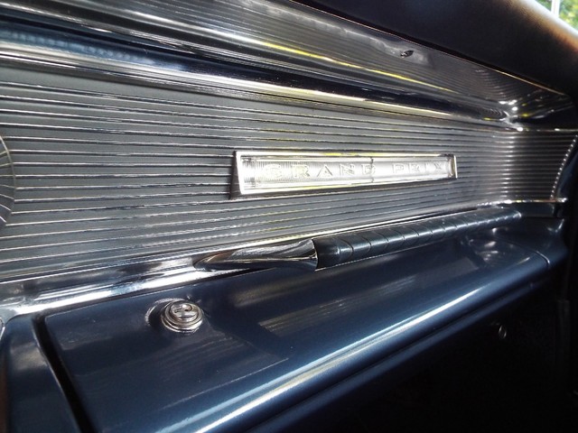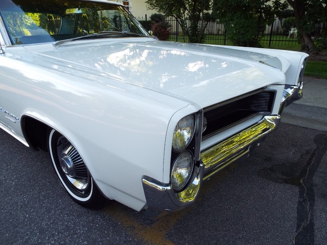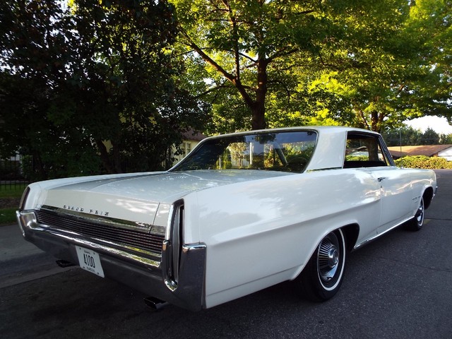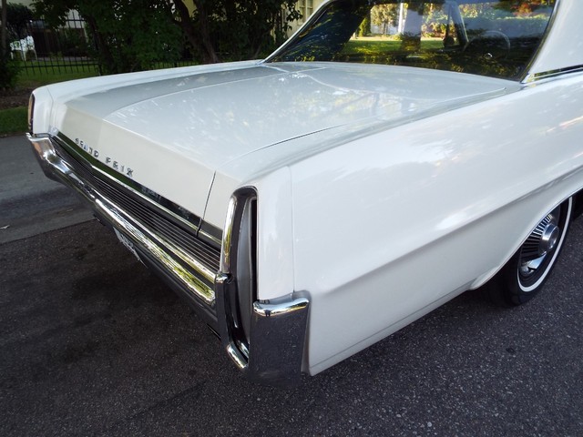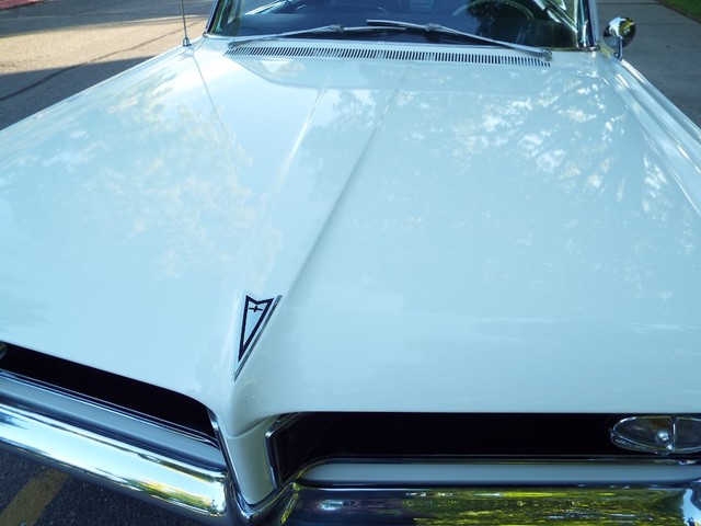 At the heart of this BEAUTY is a "GROUND POUNDING" - APPEARS ORIGINAL - Code "25K" - (303 HORSEPOWER AND 430 FT/PDS OF TORQUE FROM THE FACTORY !! ) - 389 CID V8 Motor and it is running VERY well indeed. The motor also still retains the ORIGINAL 4 barrel intake manifold, ORIGINAL exhaust manifolds, ORIGINAL valve covers, an Edelbrock 4 barrel carb with electric choke and the ORIGINAL air cleaner housing. It sounds AWESOME too with the "THROATY" true dual exhaust system with dual chrome tips !! This car is BIG but I assure it's a ROCKET, TOO FUN !!  The engine is backed by a SMOOTH  - COMPLETELY PROFESSIONALLY REBUILT - 3 speed "Hydra-Matic"  automatic transmission which also functions very well. The BEAUTIFUL - MOSTLY FACTORY ORIGINAL !! - Code "269" - Medium Blue vinyl bucket seat interior is in VERY NICE condition for being  ORIGINAL with NICE Medium Blue vinyl front bucket seats, VERY NICE  ORIGINAL matching Medium Blue vinyl door panels, NICE ORIGINAL  Medium Blue Vinyl rear bench seat with folding center armrest, VERY  NICE Medium Blue Vinyl sunvisors, VERY NICE Medium Blue Vinyl  headliner, good ORIGINAL Grand Prix steering wheel, VERY NICE Medium Blue carpeting, NICE ORIGINAL Medium Blue and Wood Grain accented  dash, VERY NICE ORIGINAL Wood Grain accented center console, VERY NICE Medium Blue Vinyl dash pad with NO CRACKS and NICE ORIGINAL factory gauge clusters. The - Code "C" - Cameo Ivory White exterior  finish is EYE POPPING BEAUTIFUL  with really little to no wear showing other than several small chips and still looks STUNNING as you can clearly see in the video above and the 100 ADDITIONAL PICTURES BELOW. Cameo Ivory White exterior  and a BEAUTIFUL Medium Blue vinyl interior, how could it get any better ?!! This Grand Prix is nicely equipped including factory power steering, factory wing windows, good heater and defroster, factory power wipers, rare factory Economy / Power gauge, factory gauge clusters with a 120 MPH speedometer, original chrome exterior driver's side view mirror, original clock which is no longer working, good glass and the original Pontiac Delco "Super Deluxe" AM radio which is no longer working. This Classic Pontiac has great looks and STRONG MUSCLE CAR V8 power !! I drove this car for a couple of days as my everyday driver to and from the office and running errands as needed and it ran and drove EXCELLENT !! In my opinion it has the best of both worlds, luxury car comfort and muscle car power !! All of the ORIGINAL exterior light lenses and reflectors are clear, bright and in good condition for being original. This is a NICE car and there are not many of these BEAUTIES left on the roads for sure !