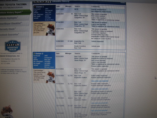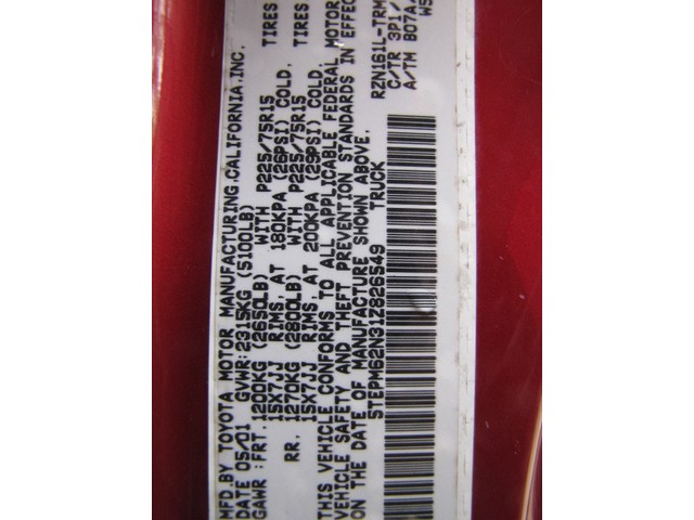 Up for sale is this well kept, maintained and taken care of, clean, never in accident 2001 Toyota Tacoma 4WD Regular Cab with 2.7L 4 Cylinder engine and 5 speed manual Transmission. Clean truck with clean Carfax report. This Tacoma's exterior is clean of any large dents and scratches. Though there are a lot of tiny dings, knicks and scratches mostly on both sides of the bed that had been touched up with red paint. Interior is clean - no stains and no foul odor. Seat on the driver side has some tear, one cigarette burn in the middle of the bench, some on the driver door panel. Everything is there and works fine including 4WD, A/C works great. Mechanically this Toyota truck is in pretty much excellent shape. No mechanical issues, No warning lights on, no electrical problems, no leaks of any kind, no rust issues. New Frame from Toyota's recall. New brakes and brake lines and rotors. Good tires all around have about 50-60% tread left. Serviced and inspected. Ready to go. For any questions call us at 917-273-4066 Thank you.