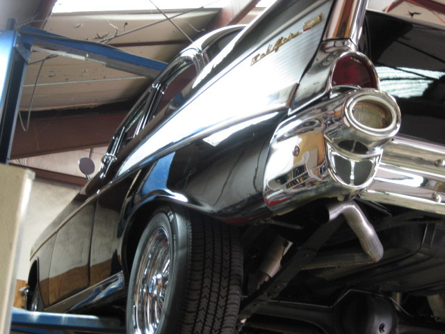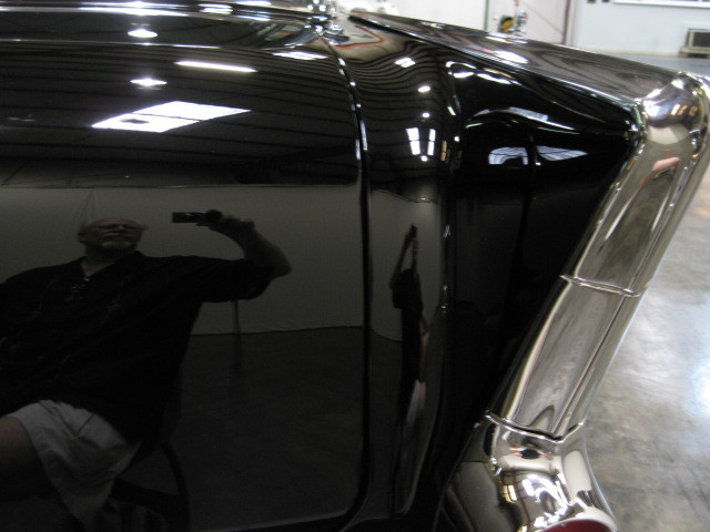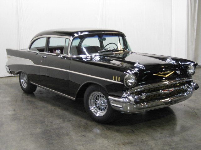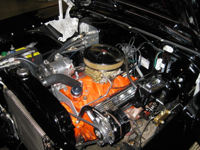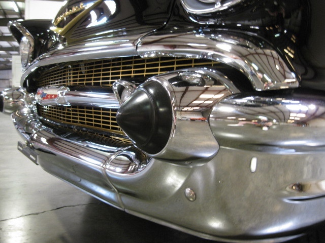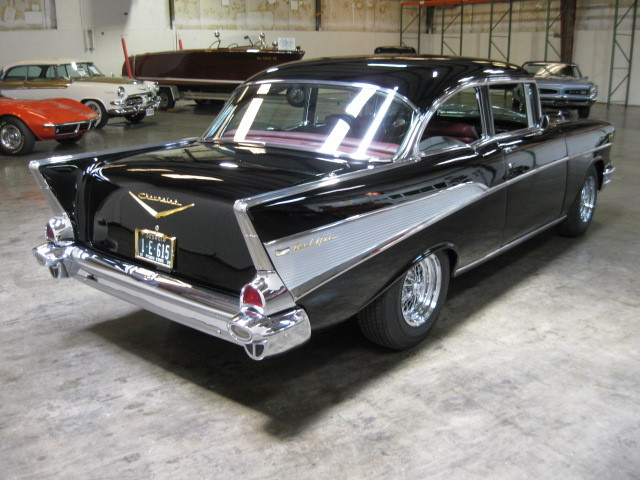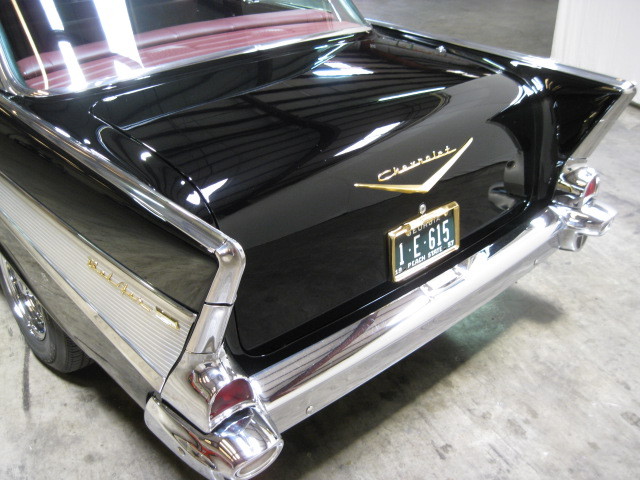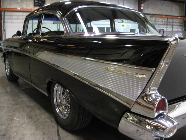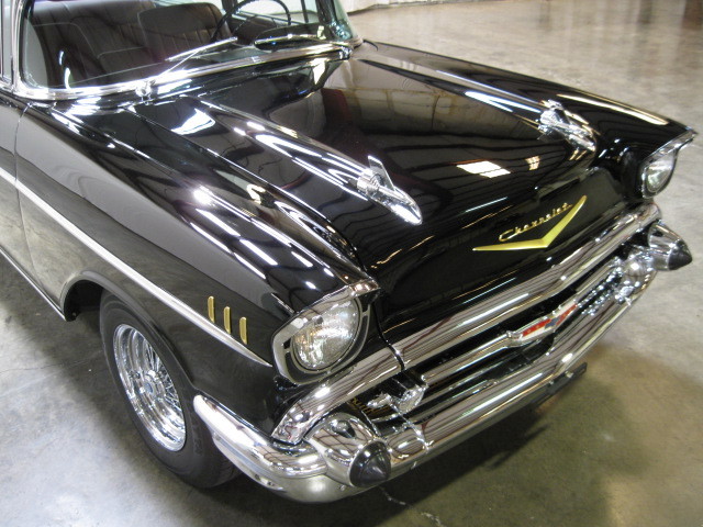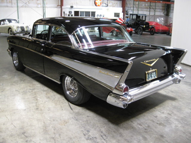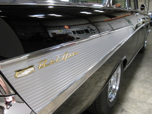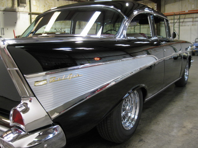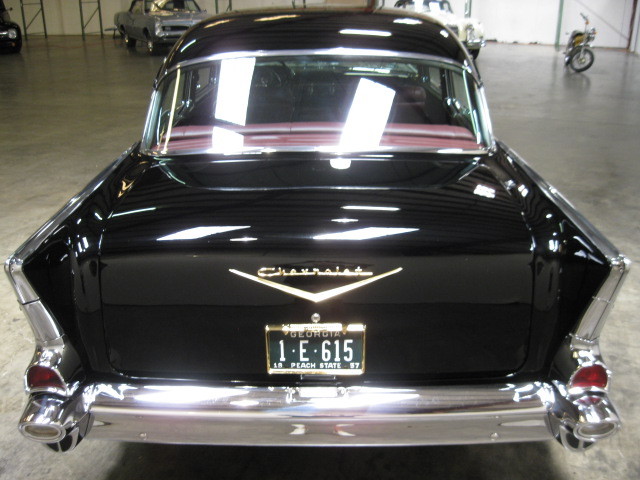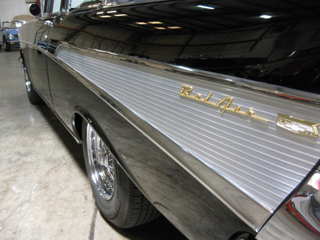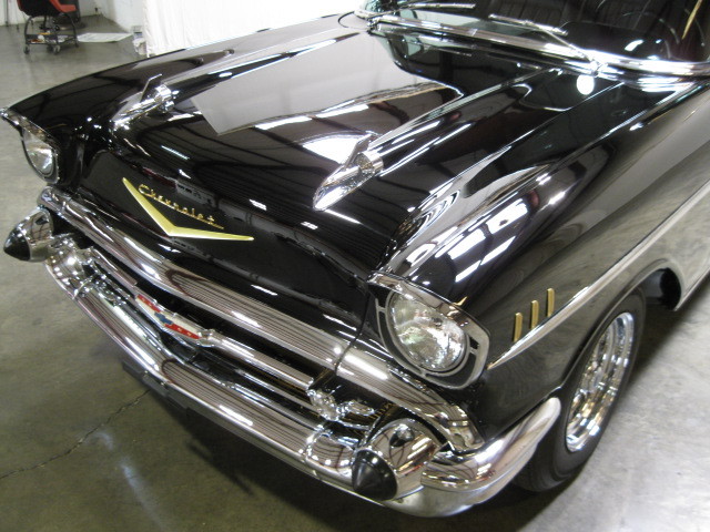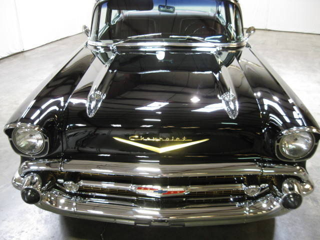 Outstanding attention to detail.  Manufactured in Atlanta Georgia and still here today. The original 283 engine and the 3 speed manual transmission that came with the car have been meticulousness rebuilt as well as every other component on this icon of the fabulous 50's.  The exterior is finished in Black and the workmanship and finish is so good it is like looking into a pool of ink. All of the chrome and stainless steel trim have been restored to better than new.  The custom leather interior, door panels and headliner complete the updated look as well offer a much more comfortable driving experience. To round out your overall driving experience vintage Air Conditioning and Heat has been added as well as power brakes, wire wheels and radial tires. We have posted 100 photos showing all body gaps, fit & finish outside, inside, bottom and engine compartment, however if we missed an area that you would like to have photographed please feel free to contact us. You cannot restore a car to this level for the reserve.