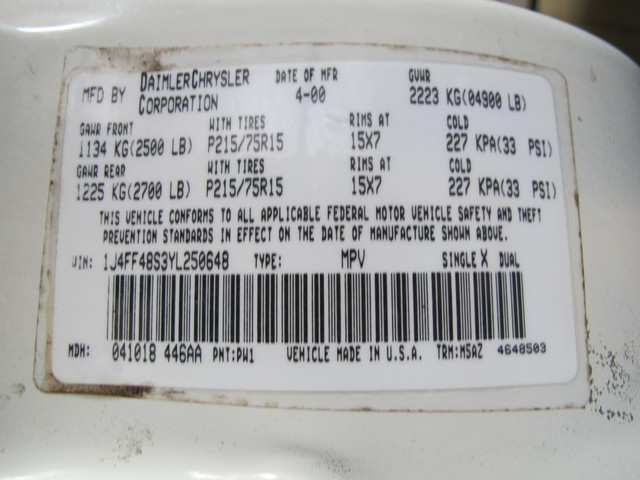 • VIN: 1J4FF48S3YL250648